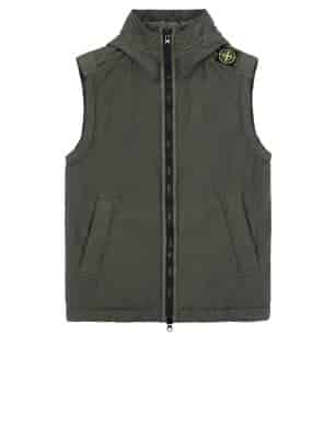 Light hooded jacket/Vest made from a light, durable and abrasion-resistant fabric, composed of mechanically spun nylon. The nylon filaments are steamed during the spinning process to deliver a perception closer to organic fibers. The fabric has been resin-treated on the inside to achieve mild wind and water resistance. The garment is padded with a PrimaLoft®-TC layer, an exclusive blend of insulating fibers, 70% recycled, engineered with STONE ISLAND to withstand the high temperatures of the garment dyeing procedures without compromising on loft or insulating properties. Garment-dyed with the addition of a special anti-drop agent. The removable sleeves are made in stretch wool knit, featuring a play of stitching techniques.