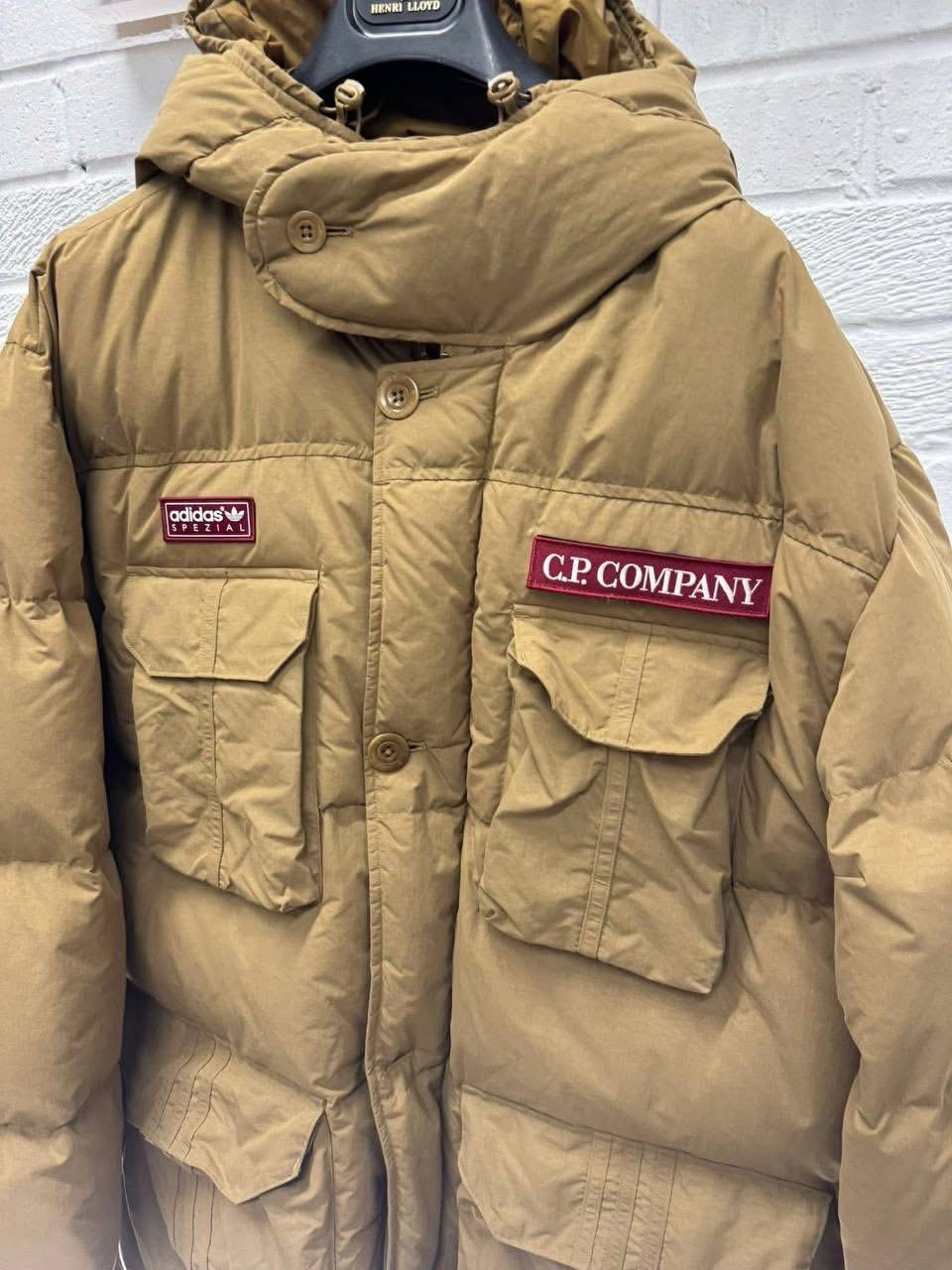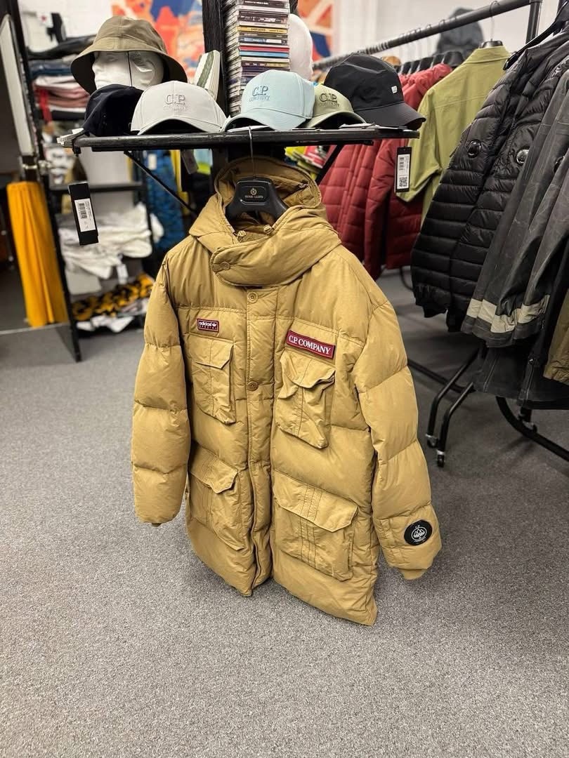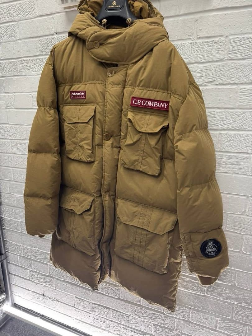 Adidas SPZL x C.P. Company Flatt Nylon Puffer Jacket in bronze brown – Small / P2P 23.5”.