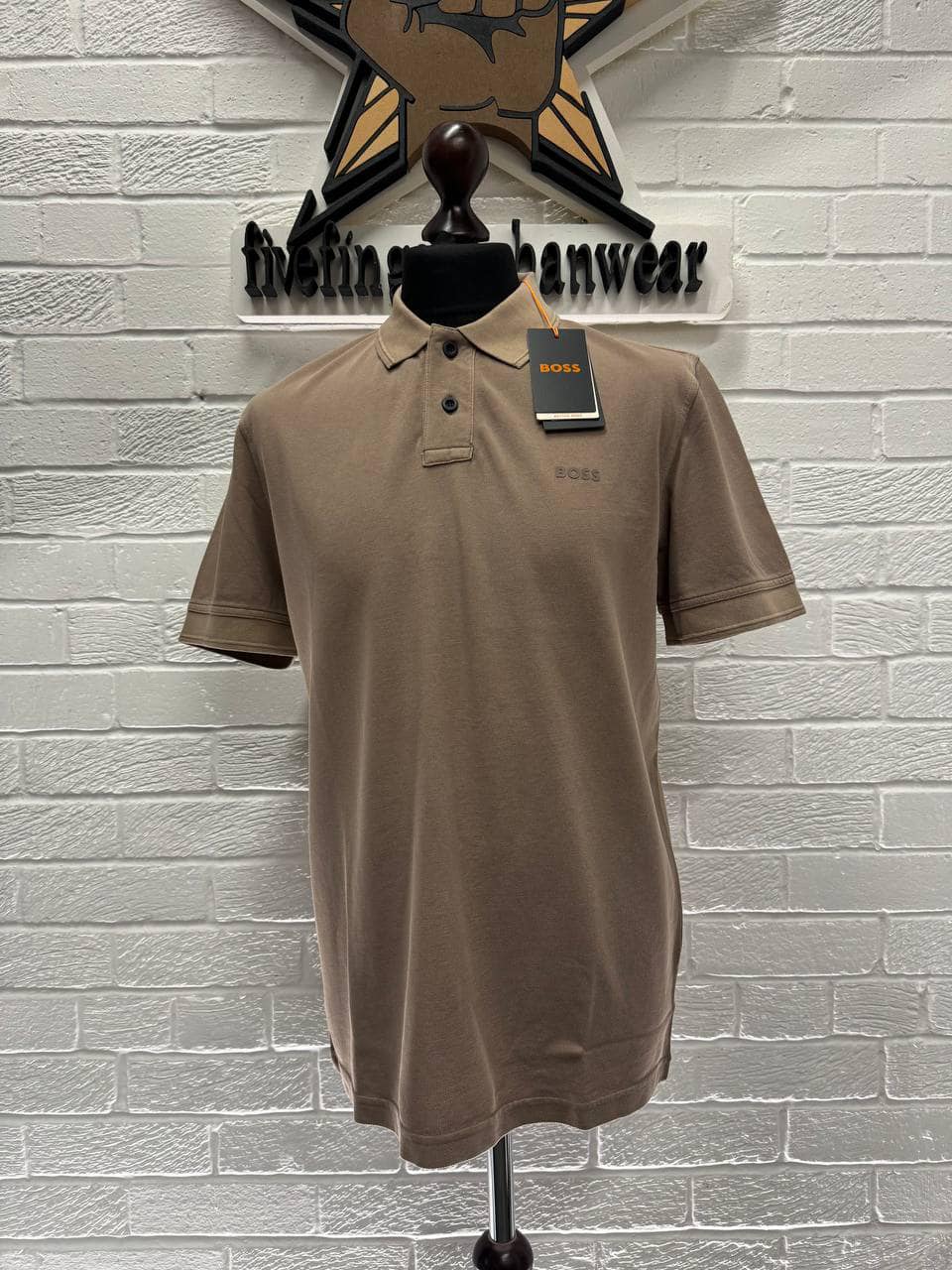 BOSS ORANGE ‘PRIME’ POLO SHIRT IN OPEN BROWN.