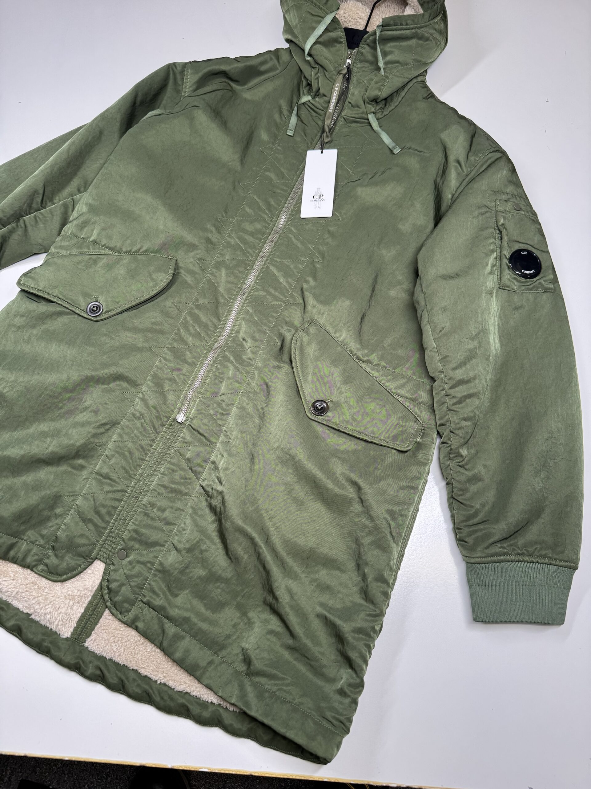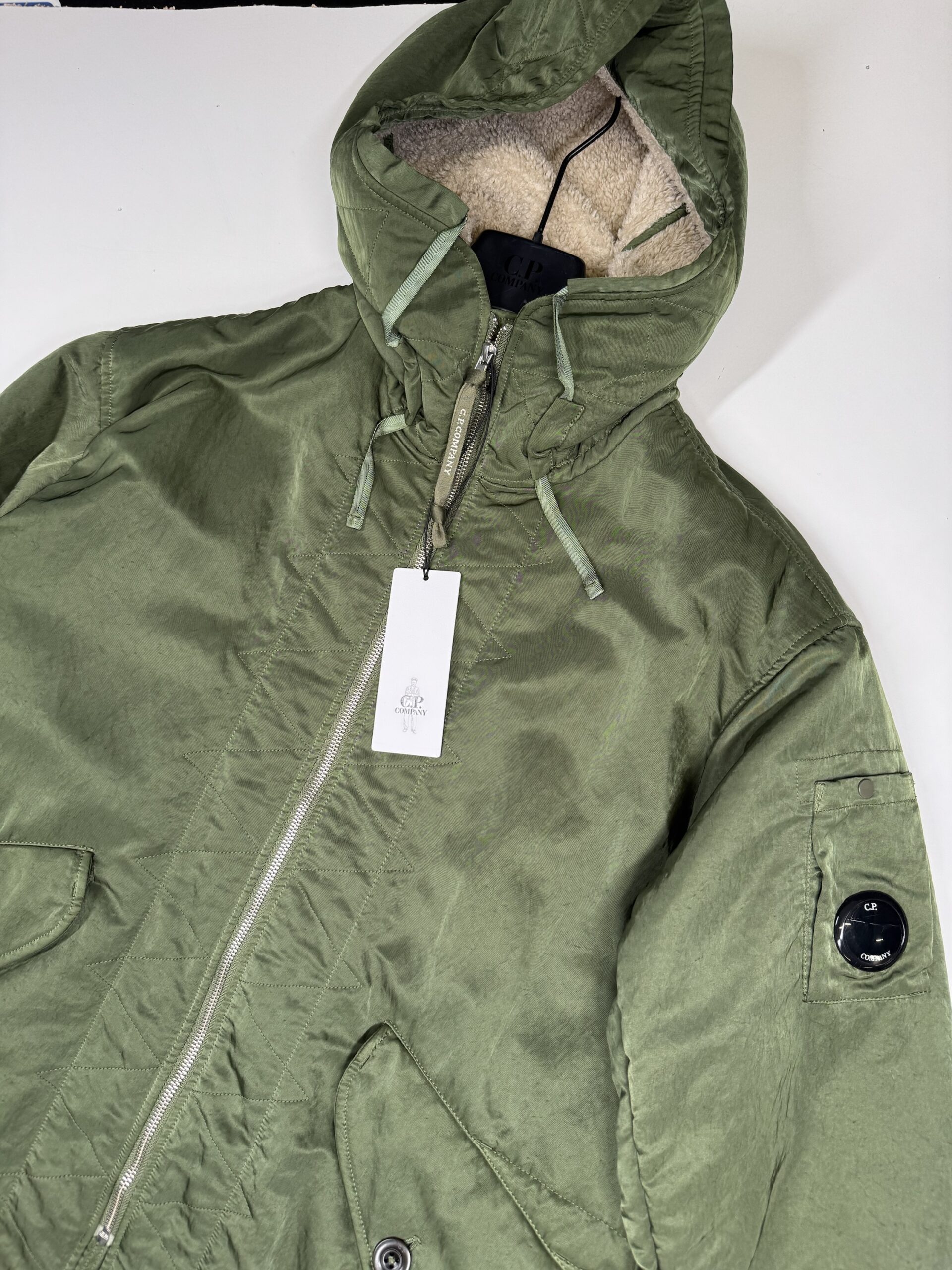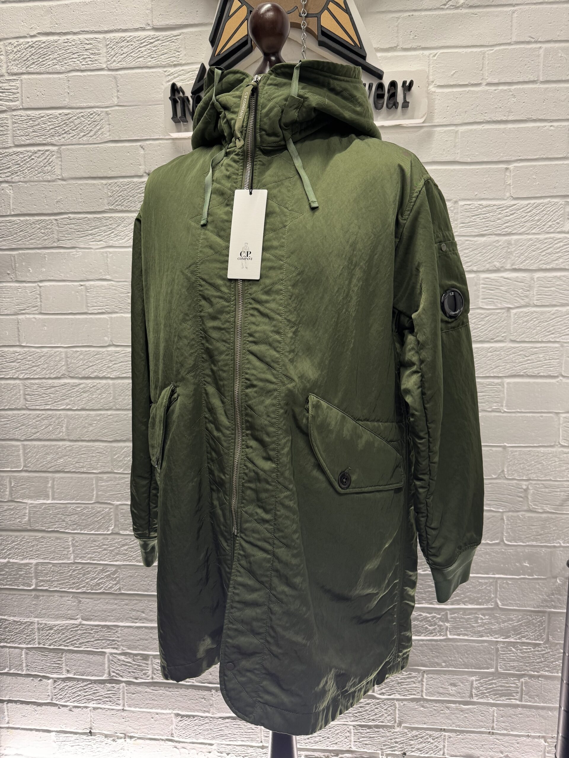 Green Parka By C.P. Company Made Of Nylon B (Polyamide) . Characterized By An Adjustable Hood In B-Multi Filament Satin Fabric, It Features A Zip Closure With Double Slider. Applied Front Pockets With Buttons. Small Pocket With Lens On The Left Sleeve. Ribbed Cuffs. Regular Fit. Composition: 100% Polyamide, 100% Polyester, 100% Polyamide.