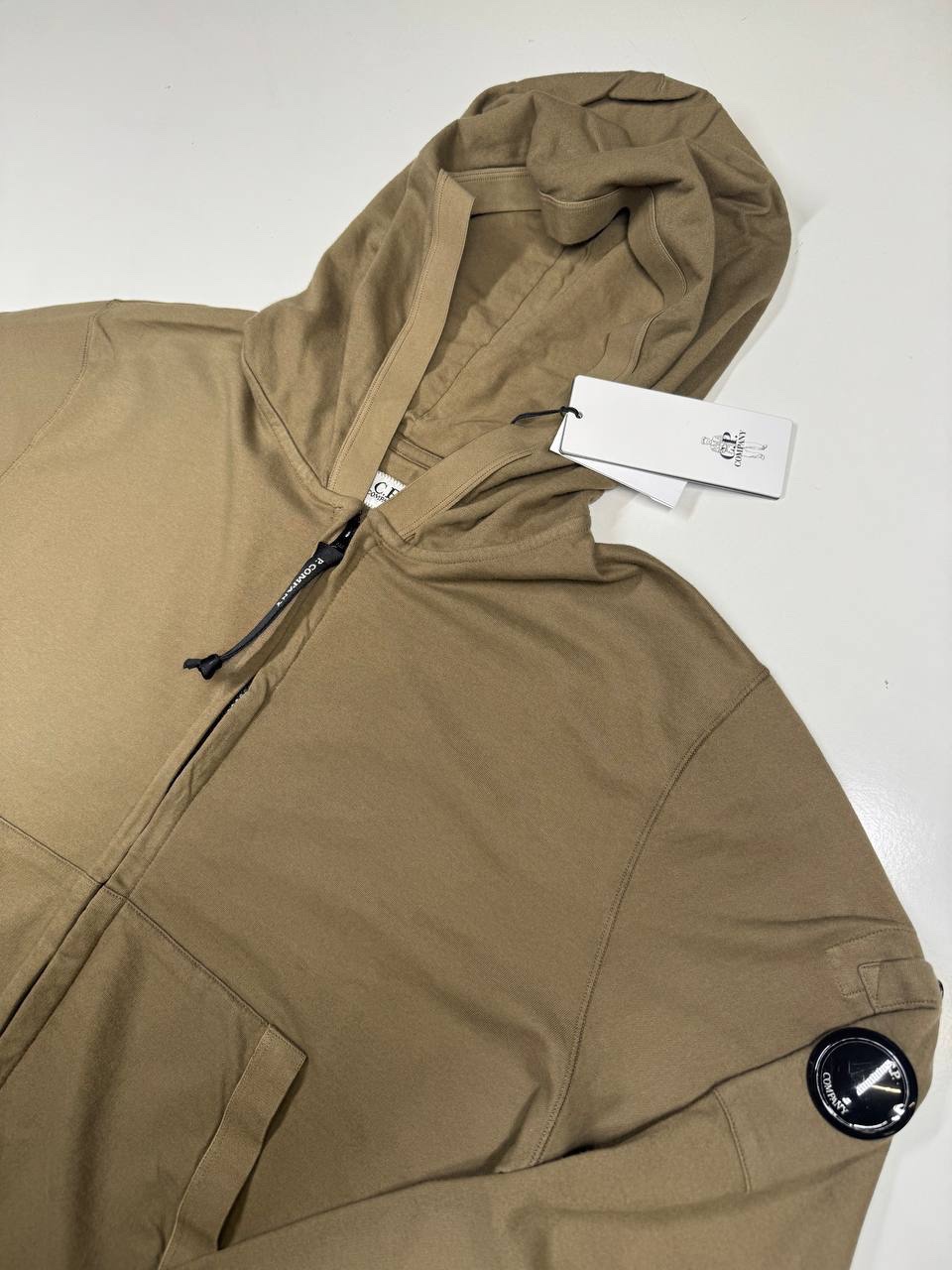 CP COMPANY GARMENT DYED LIGHT FLEECE OPEN HOODED SWEATSHIRT IN BUTTERNUT – Large / P2P 22.5”