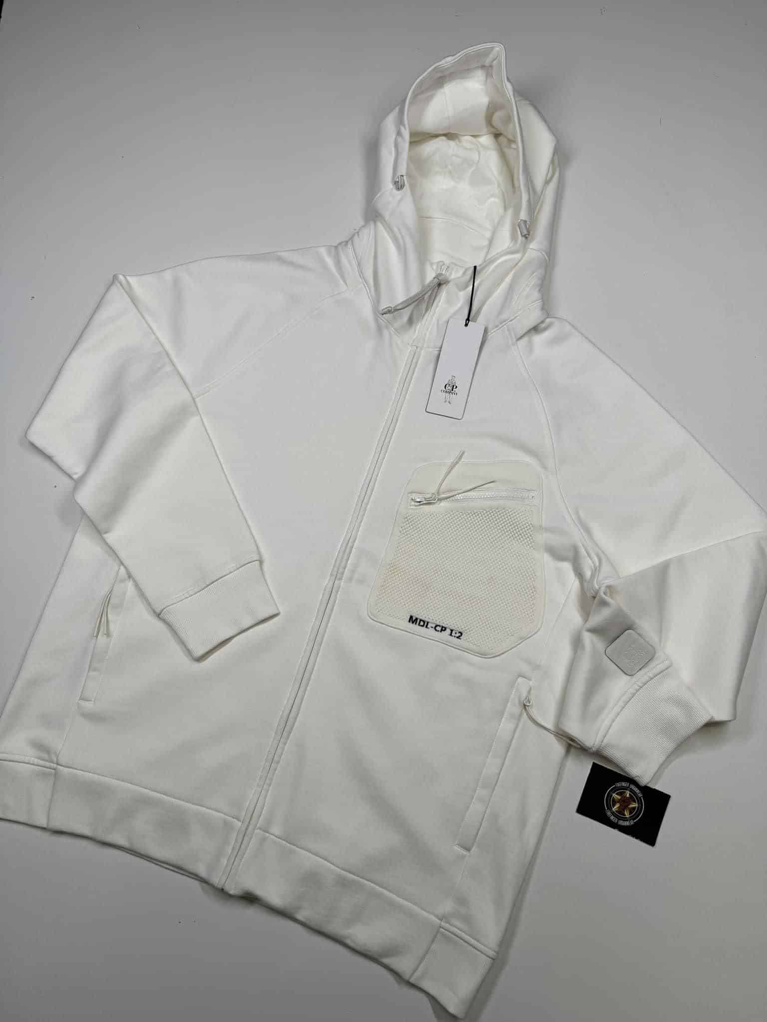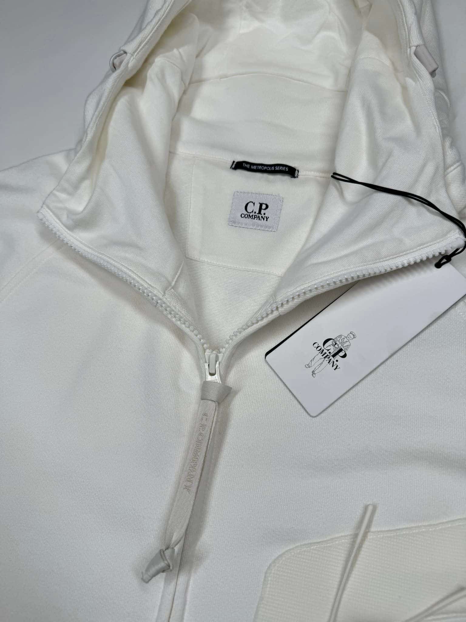 C.P. Company 078A Metropolis Series Diagonal Raised Fleece open zip Hooded Sweatshirt in white – XXL / 25” p2p