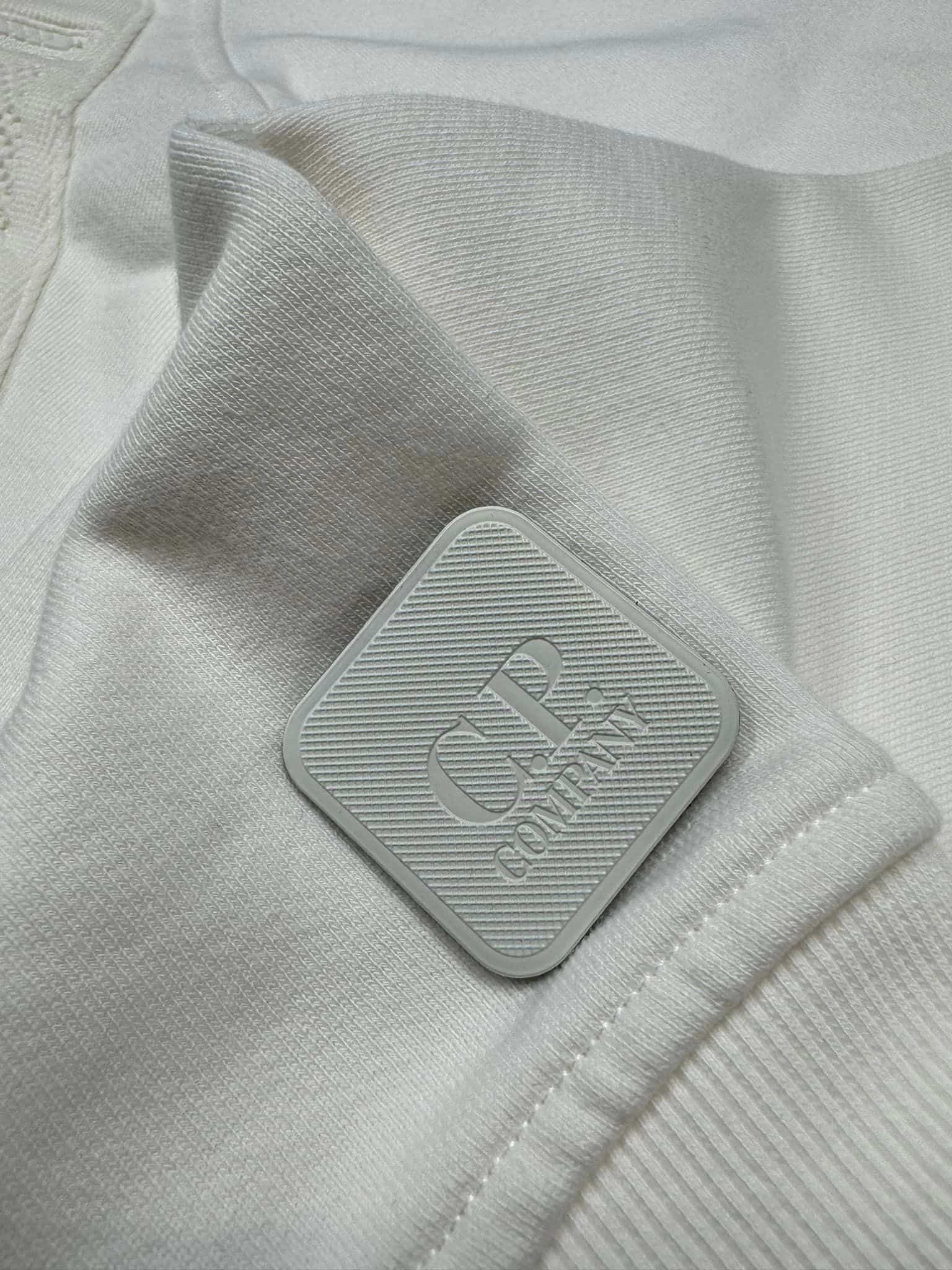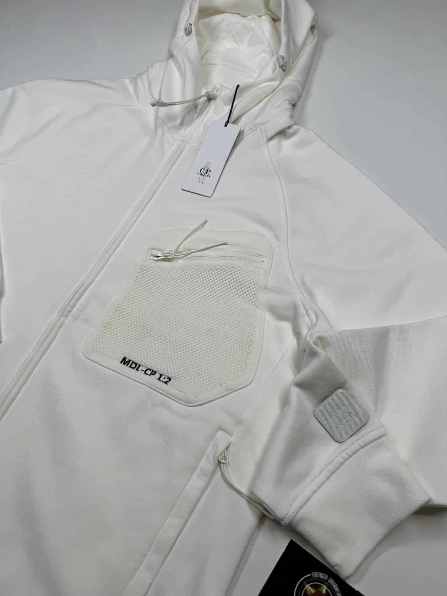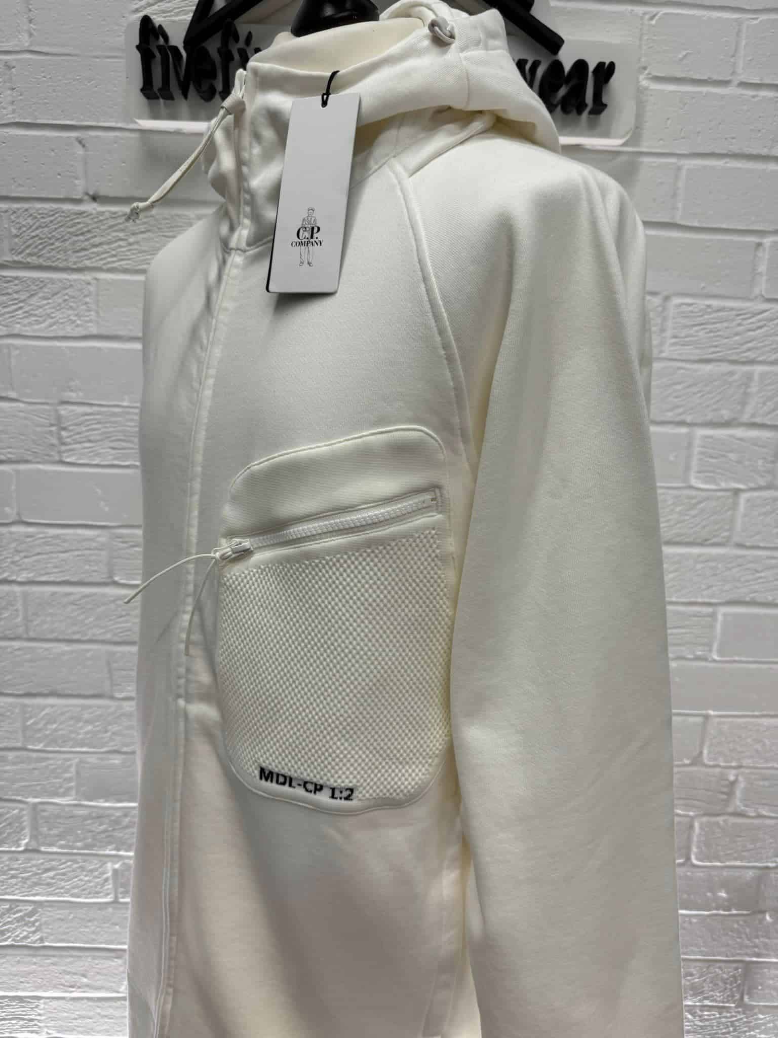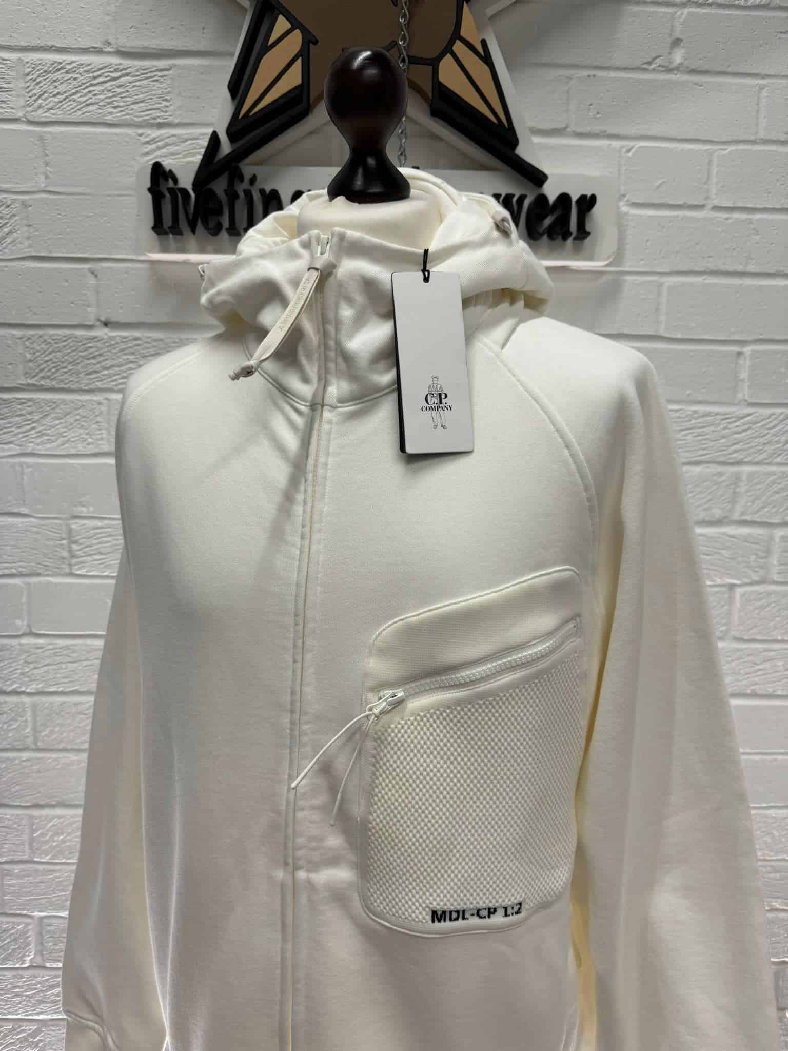 C.P. COMPANY 078A Metropolis Series Diagonal Raised Fleece open zip Hooded Sweatshirt in white