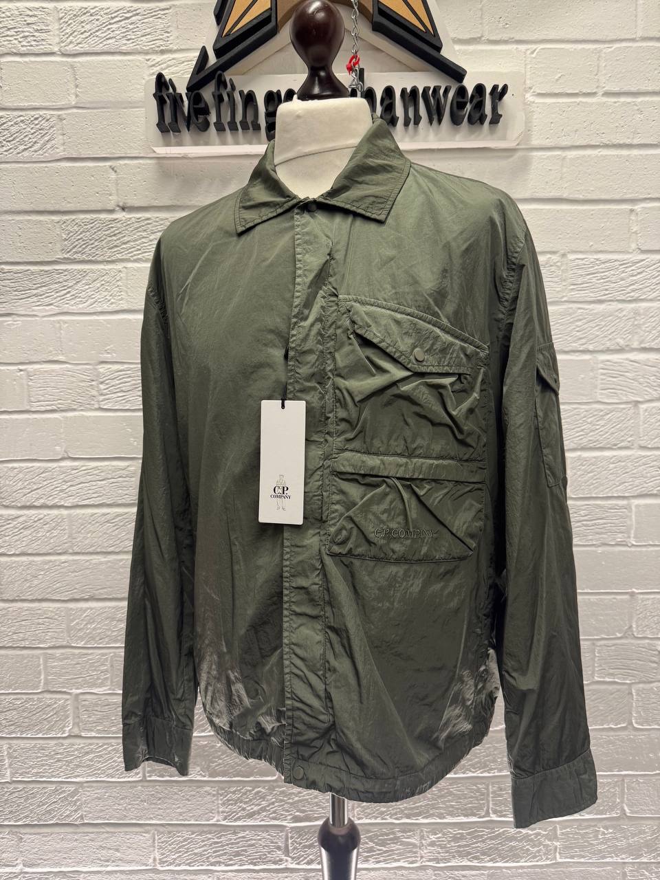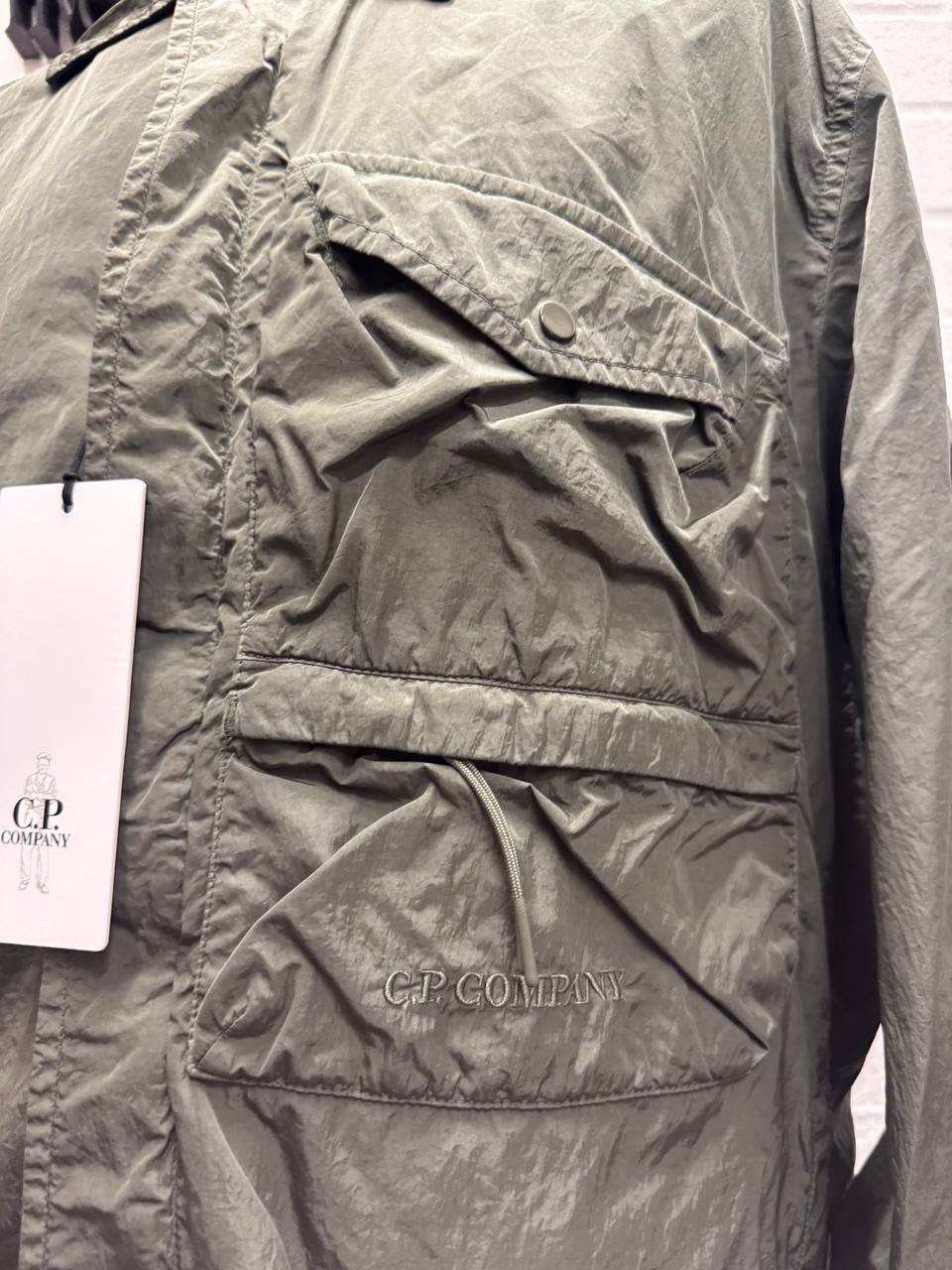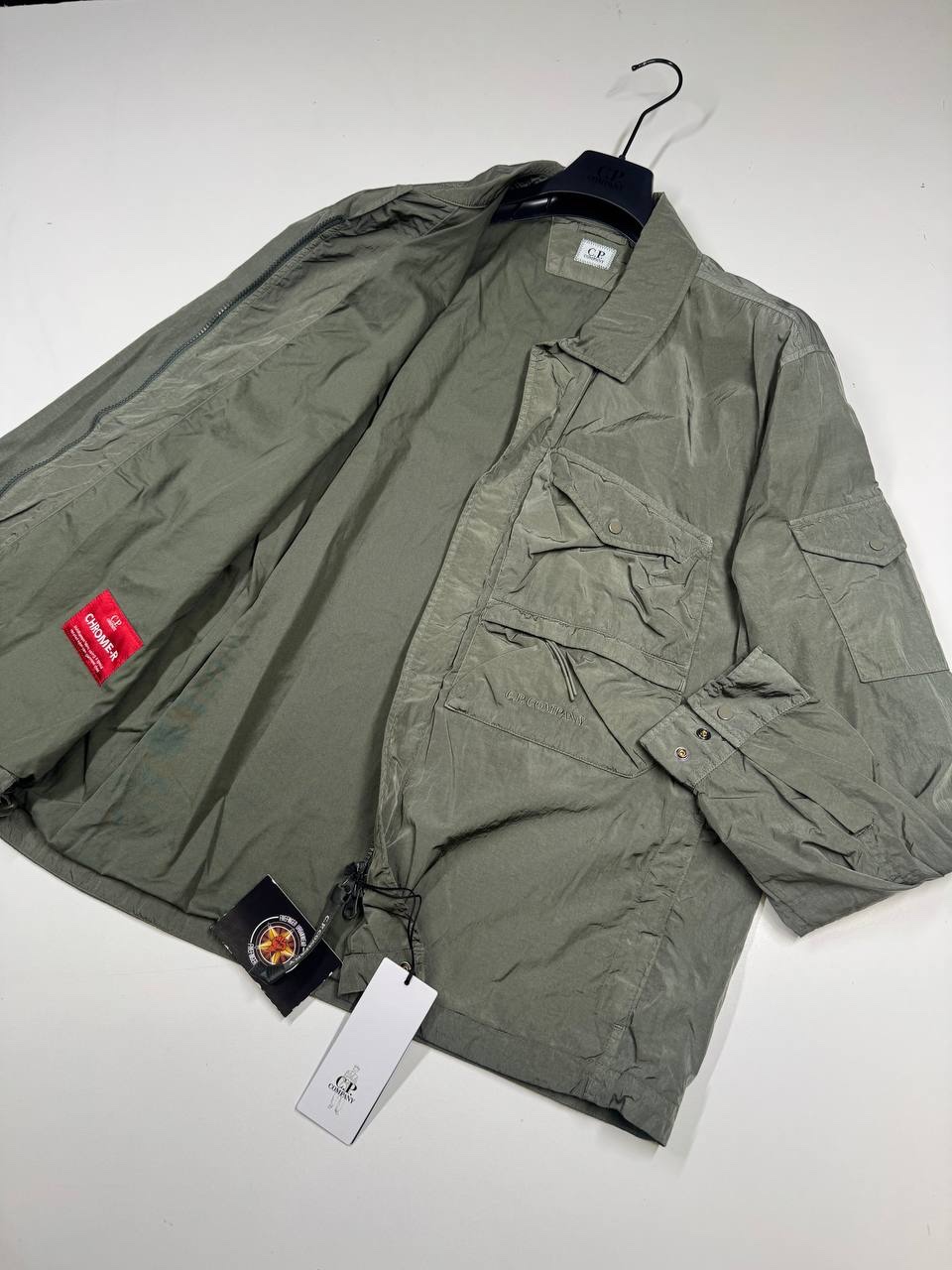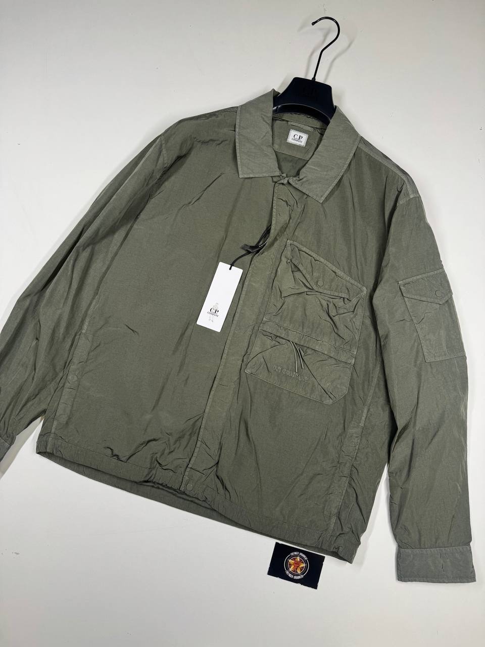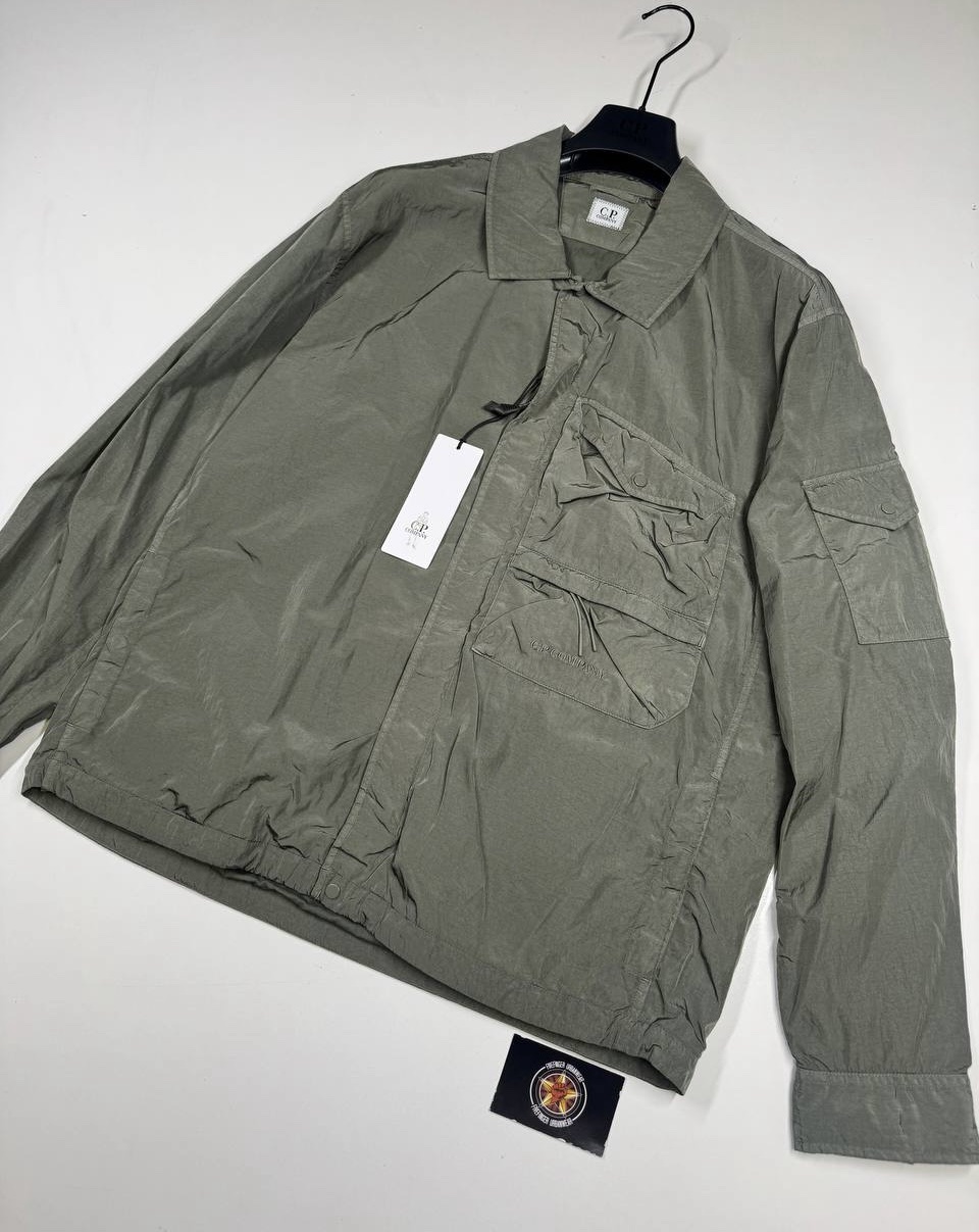 Overshirt with a classic collar and a full zip fastening, with a single chest flap pocket. The@ lined overshirt also features adjustable cuffs and the C.P. Company detail to pocket .Chrome-R is a 100% pre-consumer recycled version of our woven multifilament nylon, offering a great barrier against water and wind. Developed exclusively for garment dyeing, Chrome-R resists the pigmenting process, which generates lighter and more vibrant tones in the finished garment.