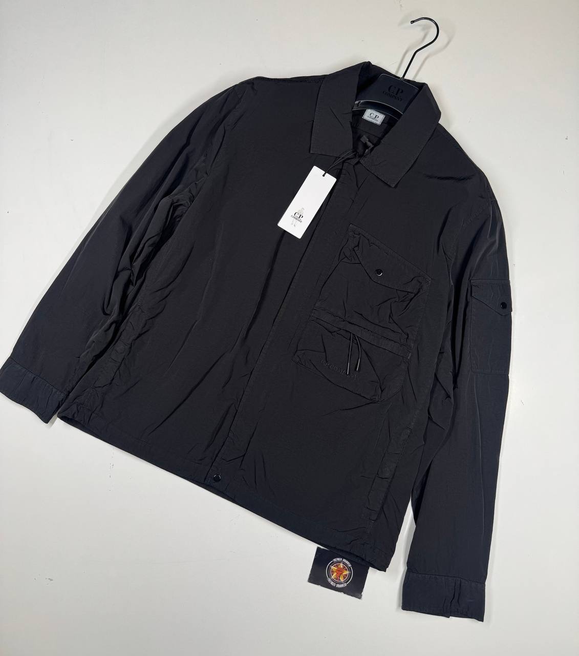 Overshirt with a classic collar and a full zip fastening, with a single chest flap pocket. The@ lined overshirt also features adjustable cuffs and the C.P. Company detail to pocket .Chrome-R is a 100% pre-consumer recycled version of our woven multifilament nylon, offering a great barrier against water and wind. Developed exclusively for garment dyeing, Chrome-R resists the pigmenting process, which generates lighter and more vibrant tones in the finished garment.