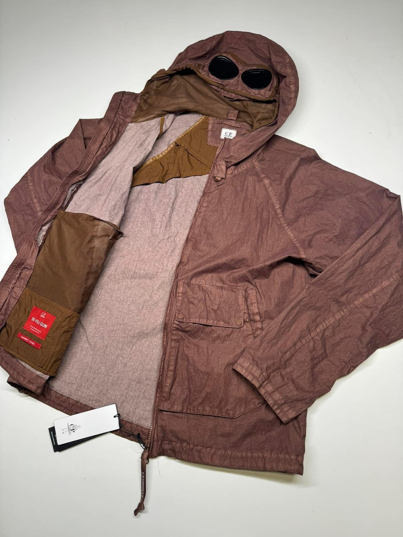 C.P. COMPANY 50 FILI GUM GOGGLE JACKET IN ROUGE