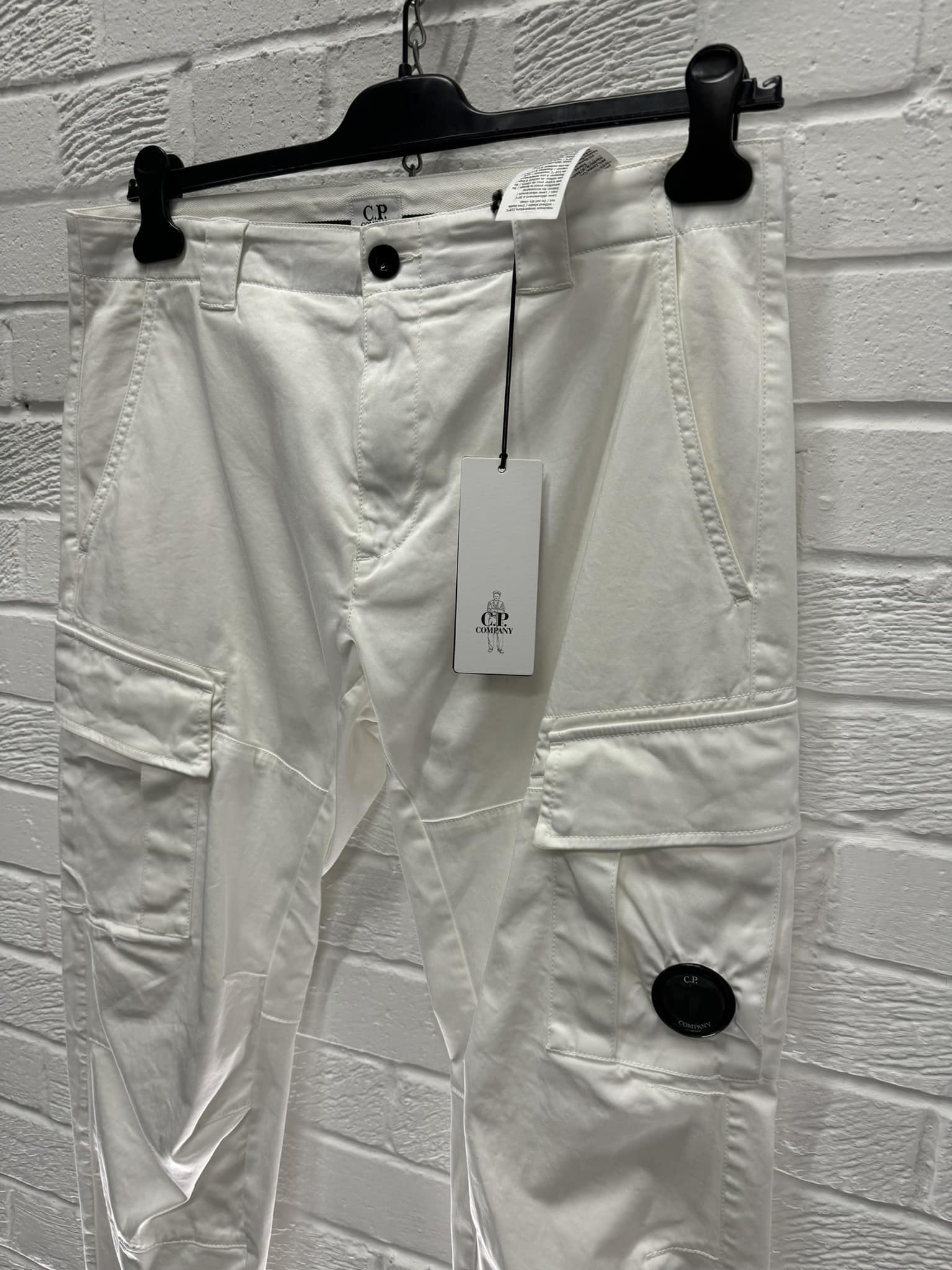 C.P COMPANY SATIN STRETCH CARGO PANT IN WHITE – Size 48 / W32”