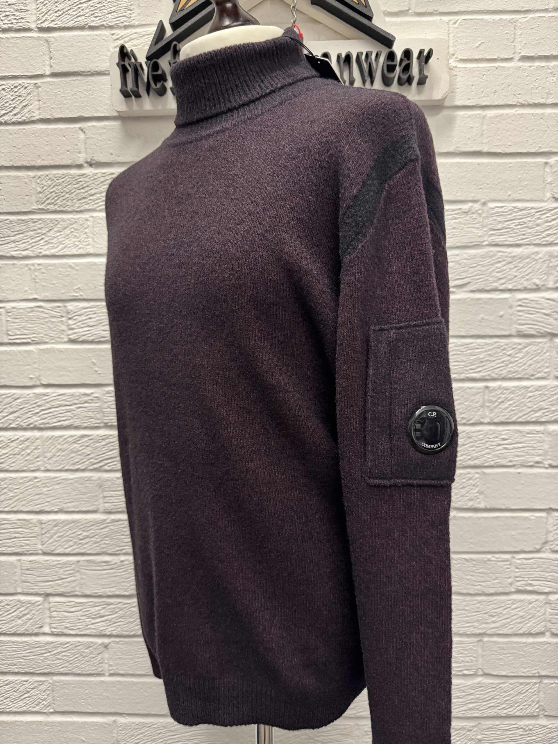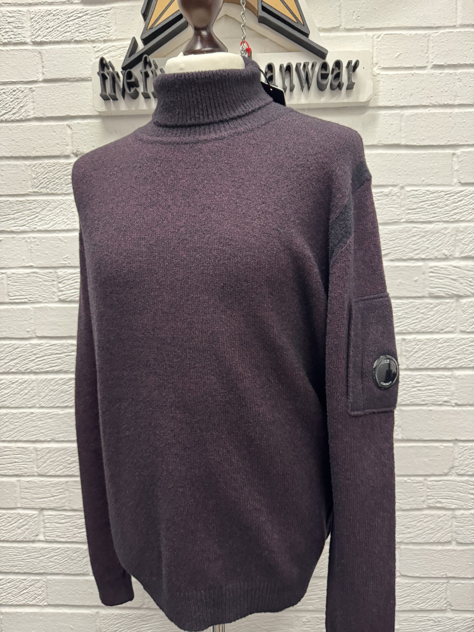 CP Company 257A Fleece Knit Turtle Neck Sweater in potent purple / 790