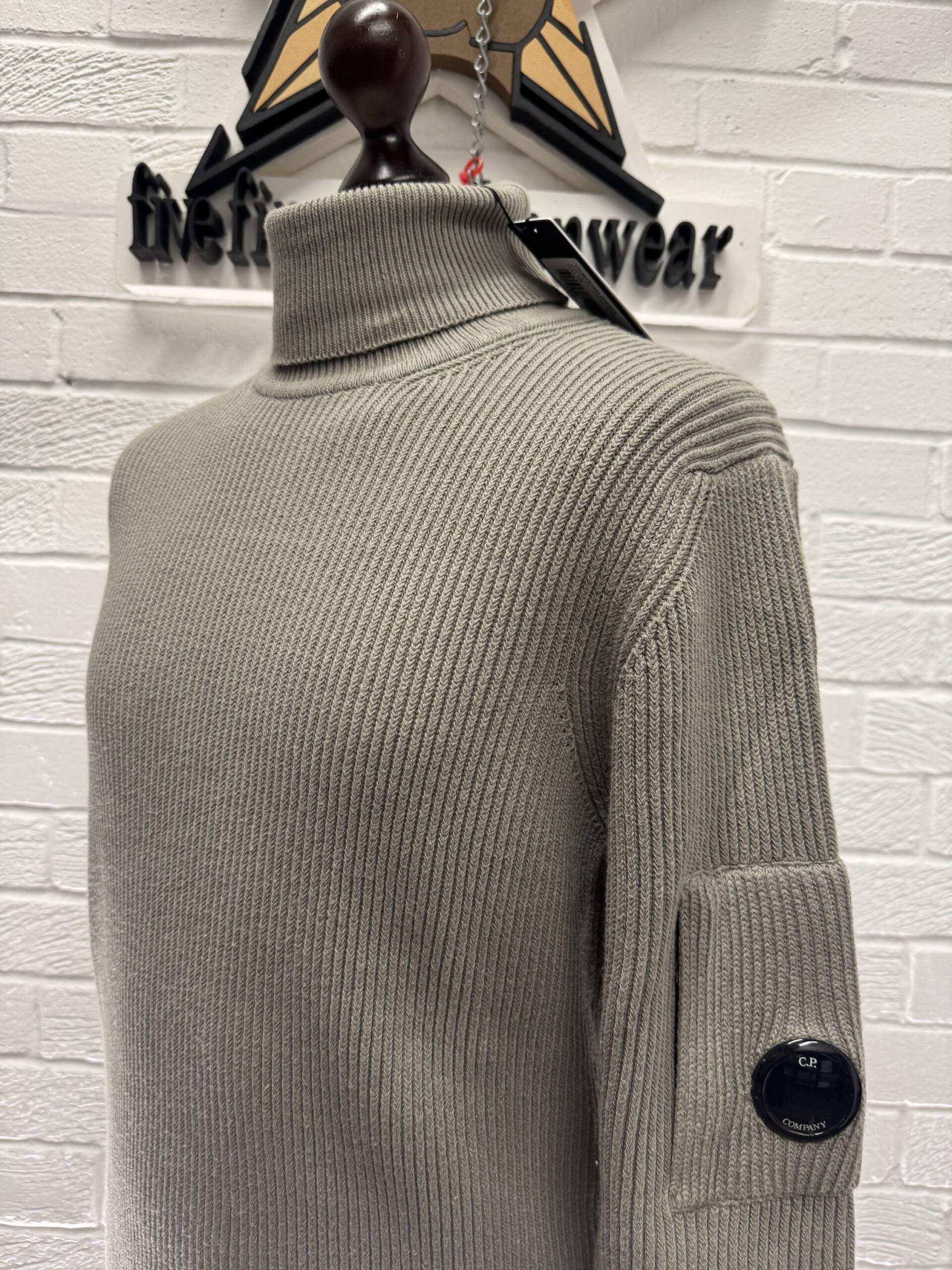 C.P. Company Turtleneck Full Rib merino wool pull over in Vintage Khaki