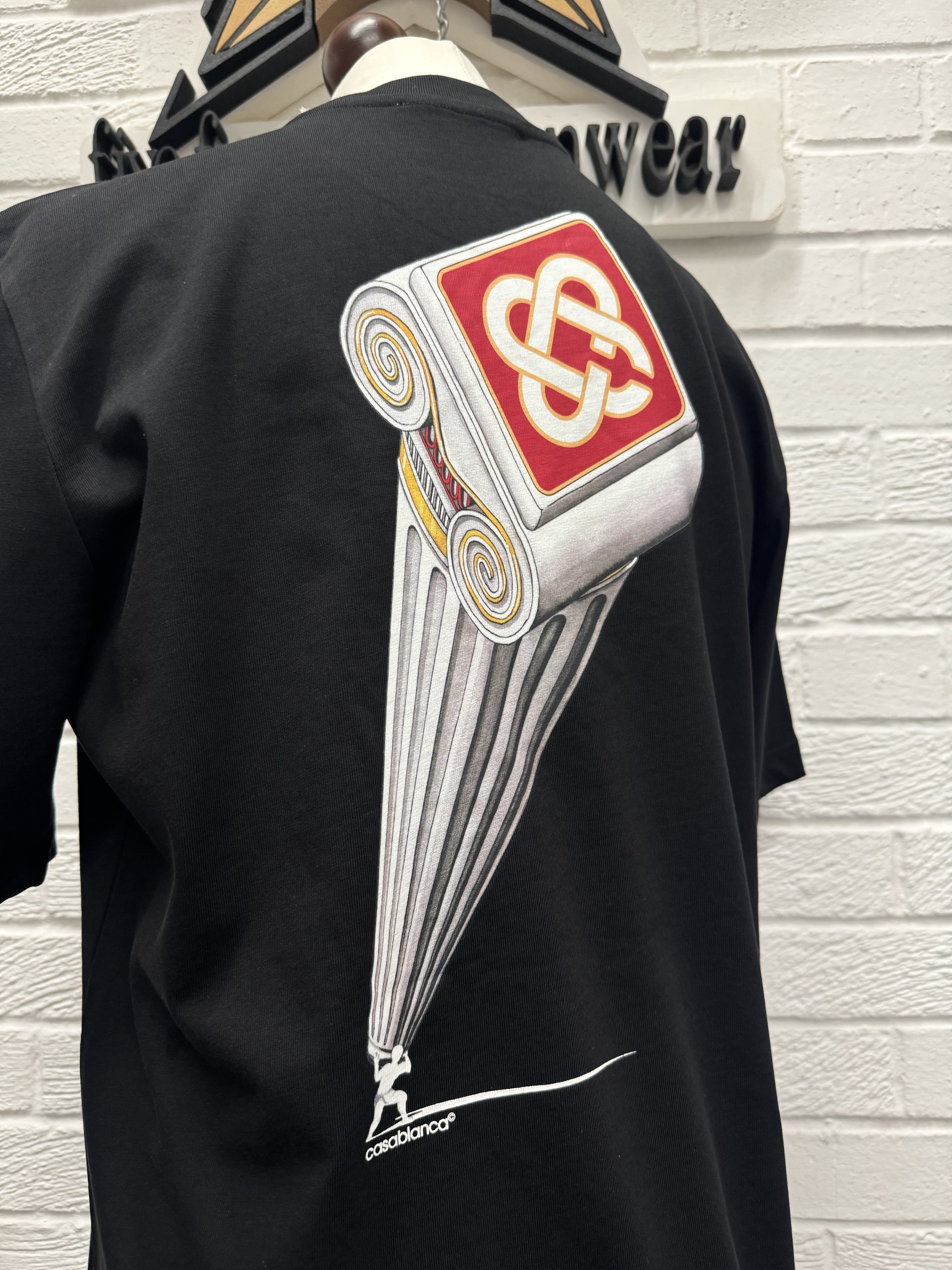 Founded by Charaf Tajer, Casablanca embodies a unique blend of luxury and leisure, inspired by the rich cultural heritage of both North Africa and France. Graphic tees are also part of the deal, including this casual Leaning Column T-Shirt. The same graphic appears in small at the chest and much larger across the back, incorporating the brand’s logo beneath. Cut from premium cotton with a comfortable fit, this T-shirt can certainly carry its weight.