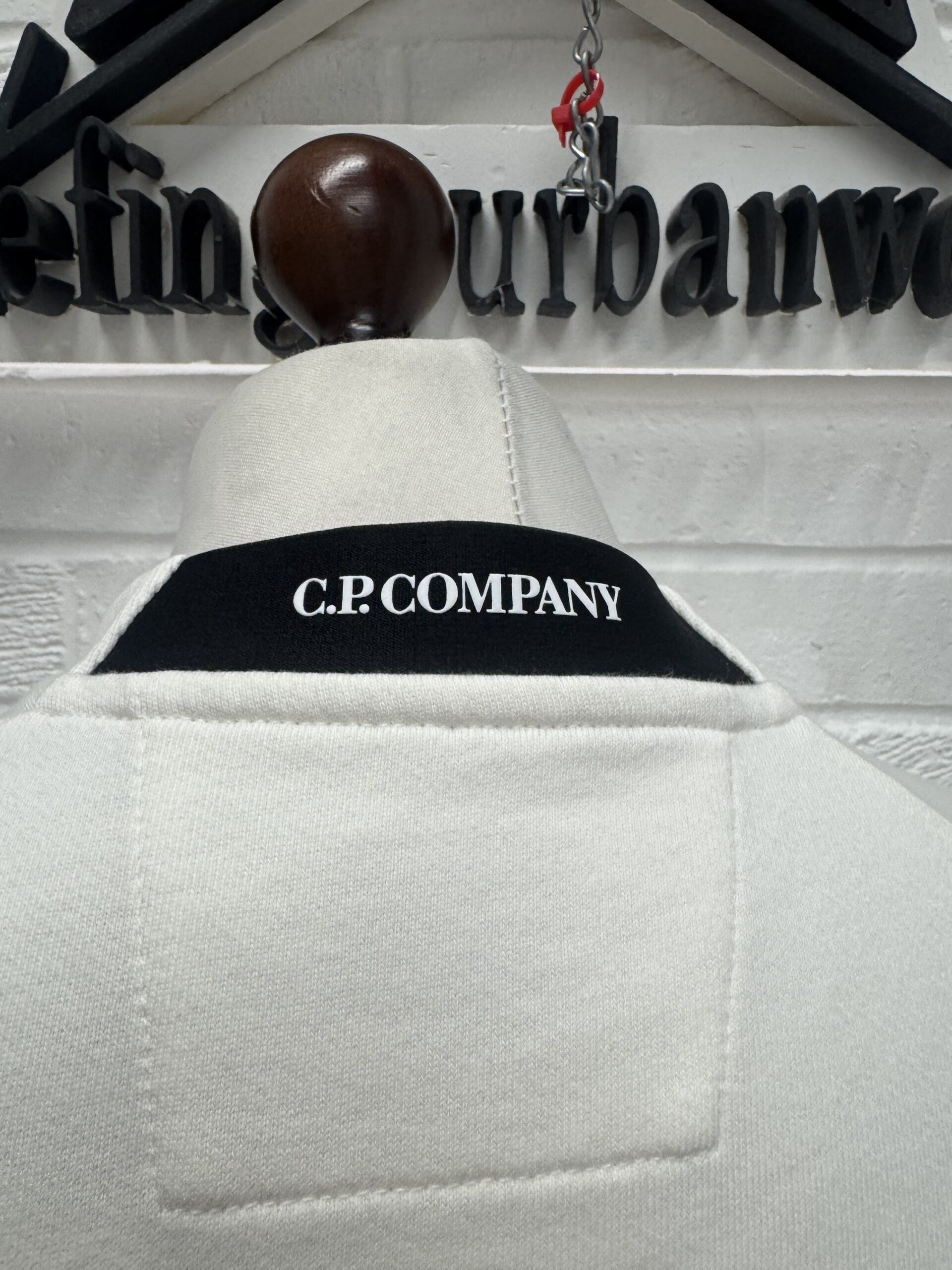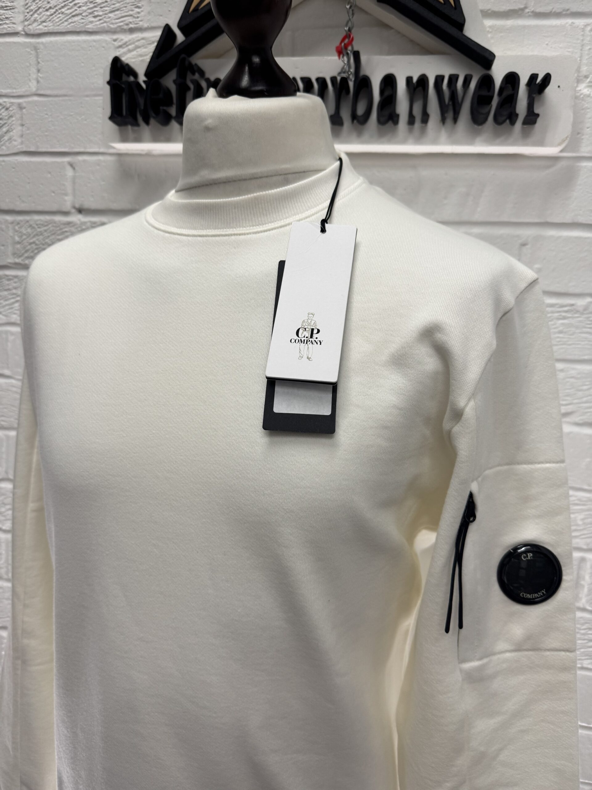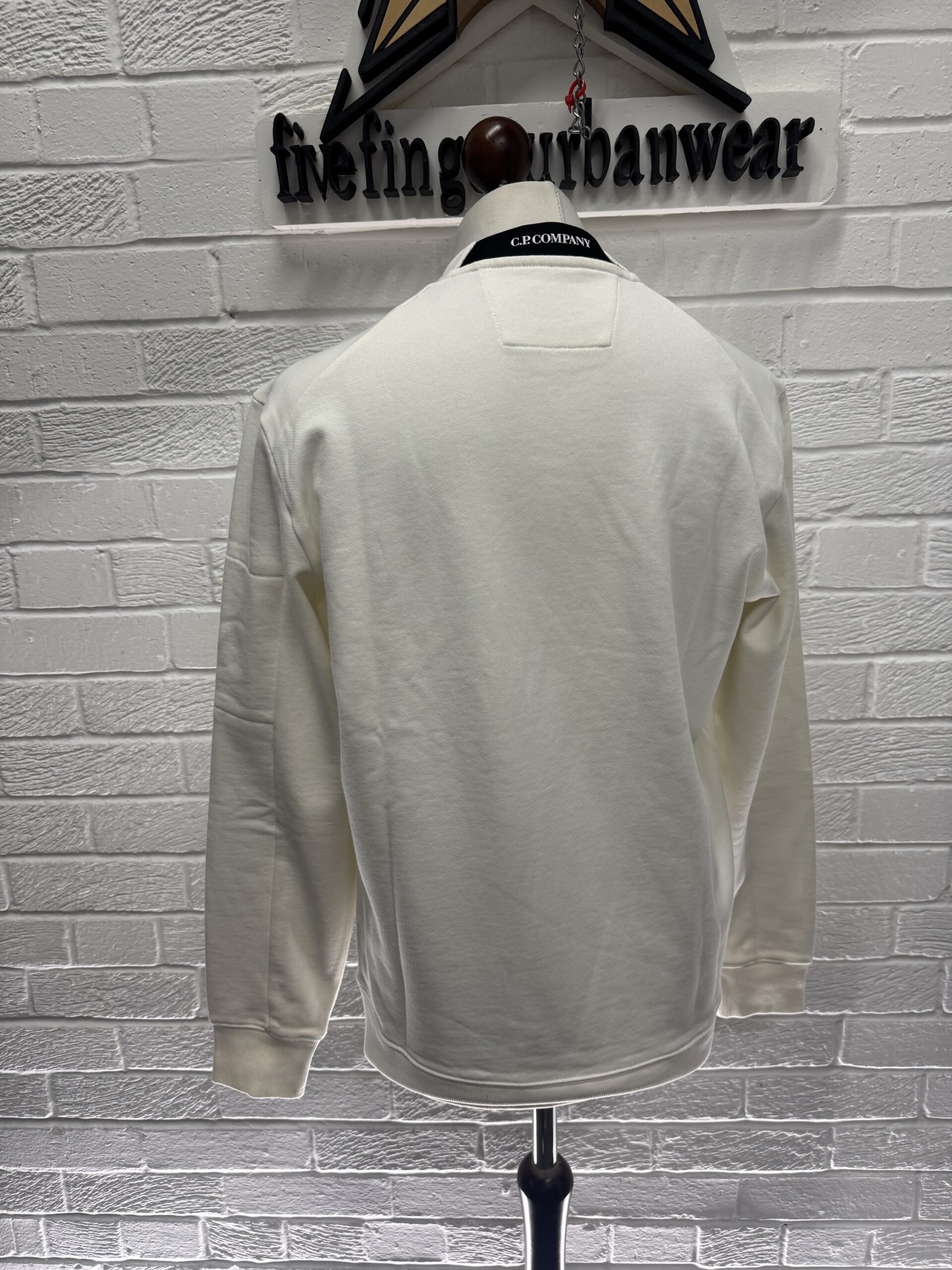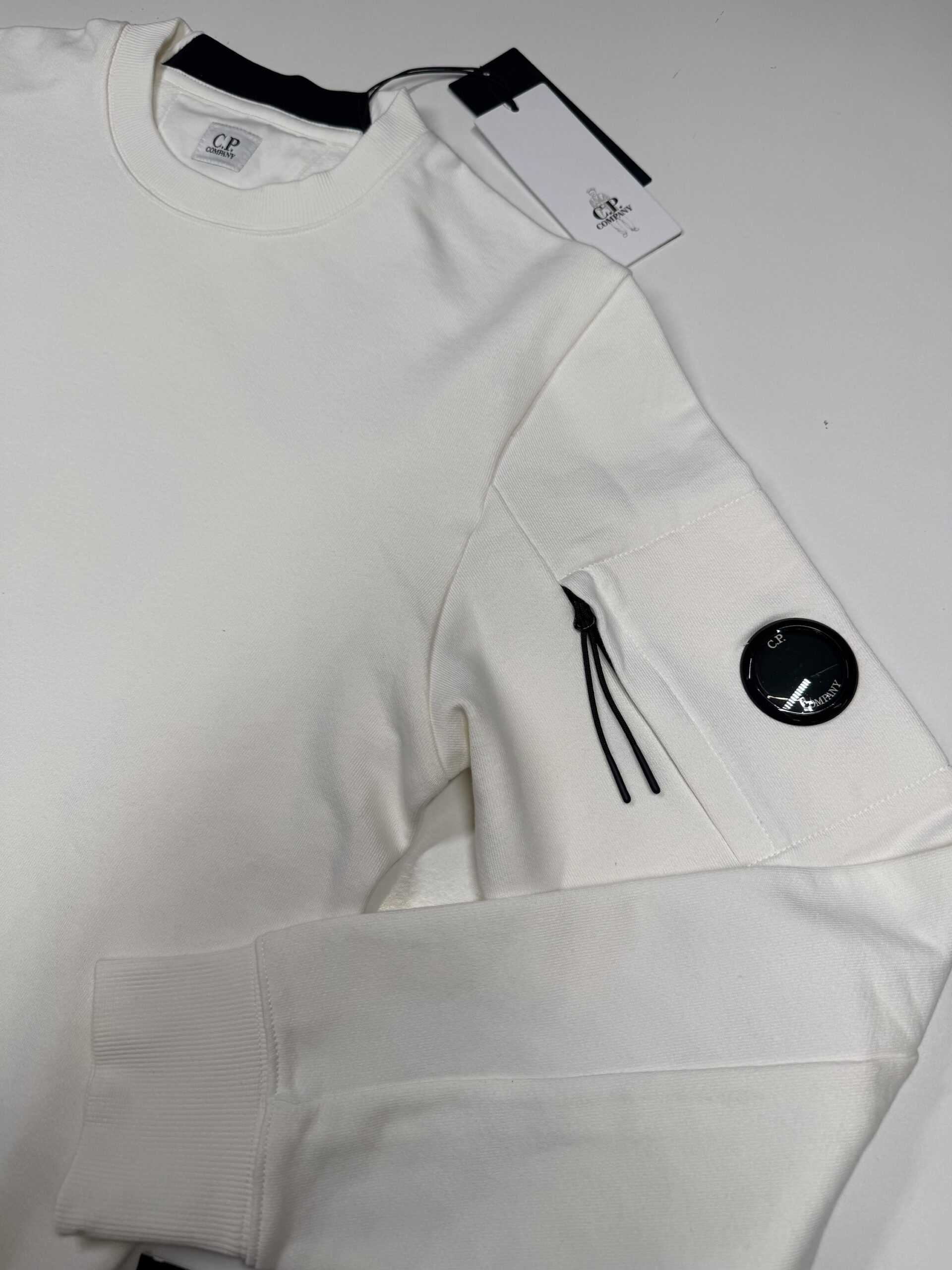 CP COMPANY 023A Diagonal Raised Fleece Crew neck Sweatshirt in White