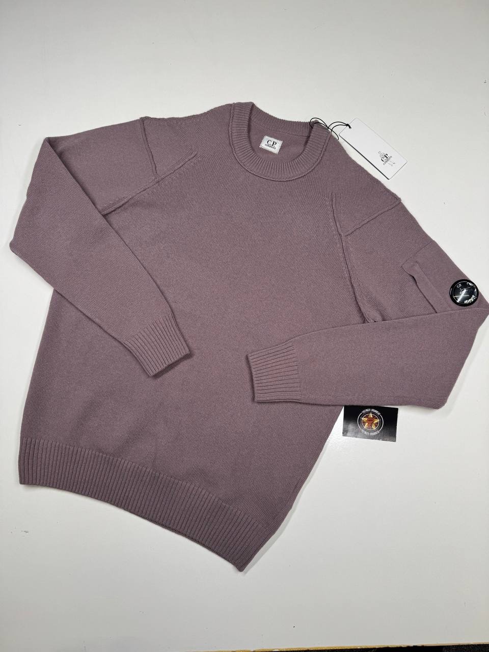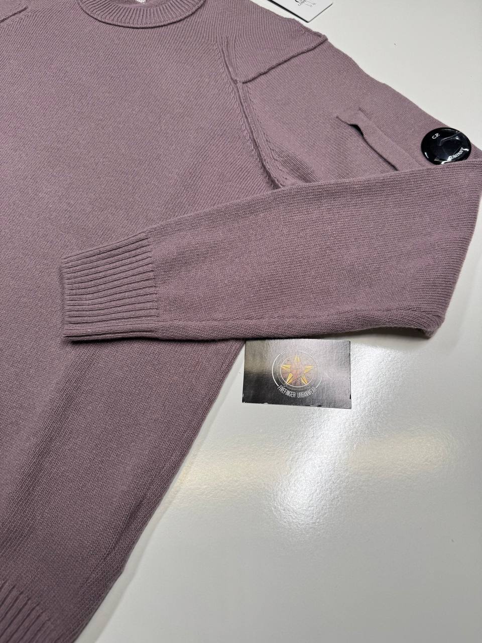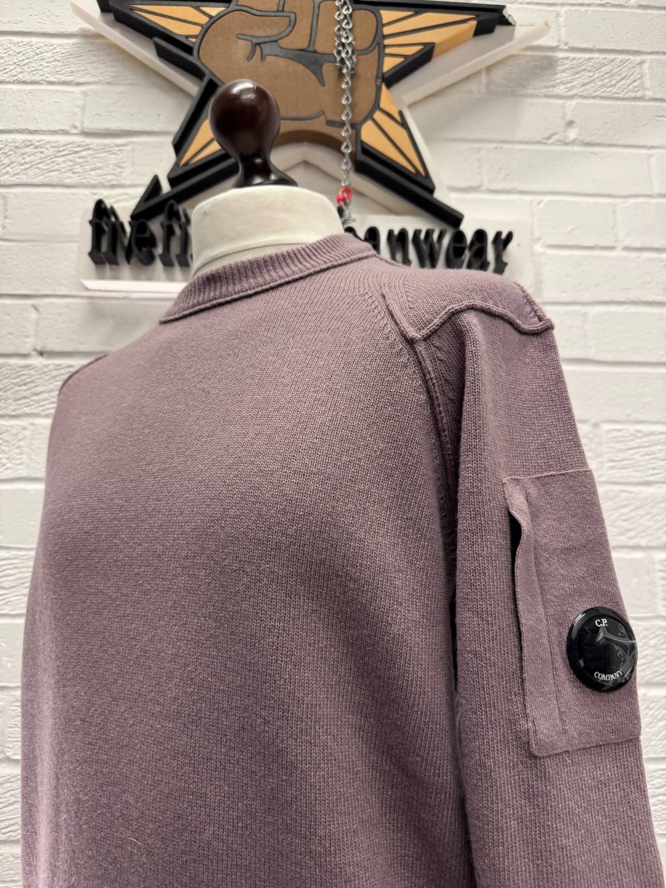 CP COMPANY 047A LAMBSWOOL LENS KNIT SWEATSHIRT IN PURPLE DOVE – Large / P2P 22”.