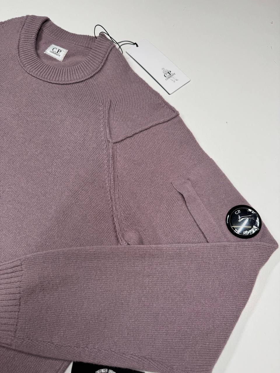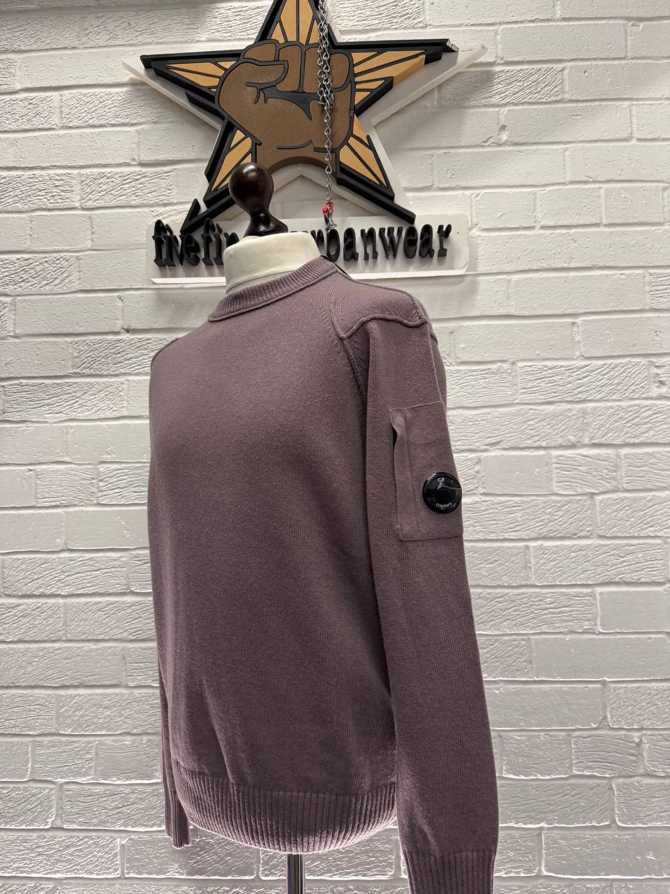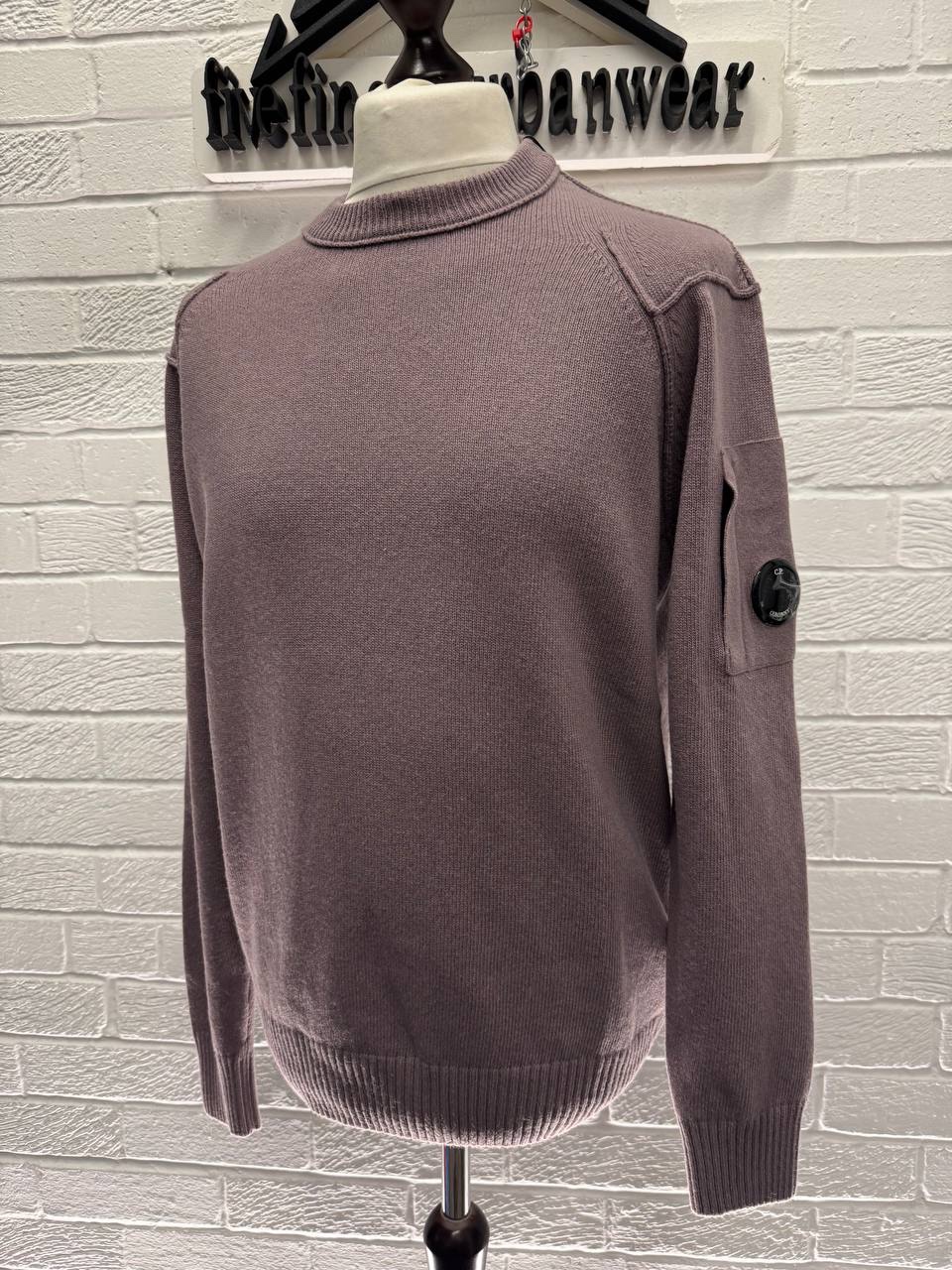 CP COMPANY 047A LAMBSWOOL LENS KNIT SWEATSHIRT IN PURPLE DOVE – Large / P2P 22”.