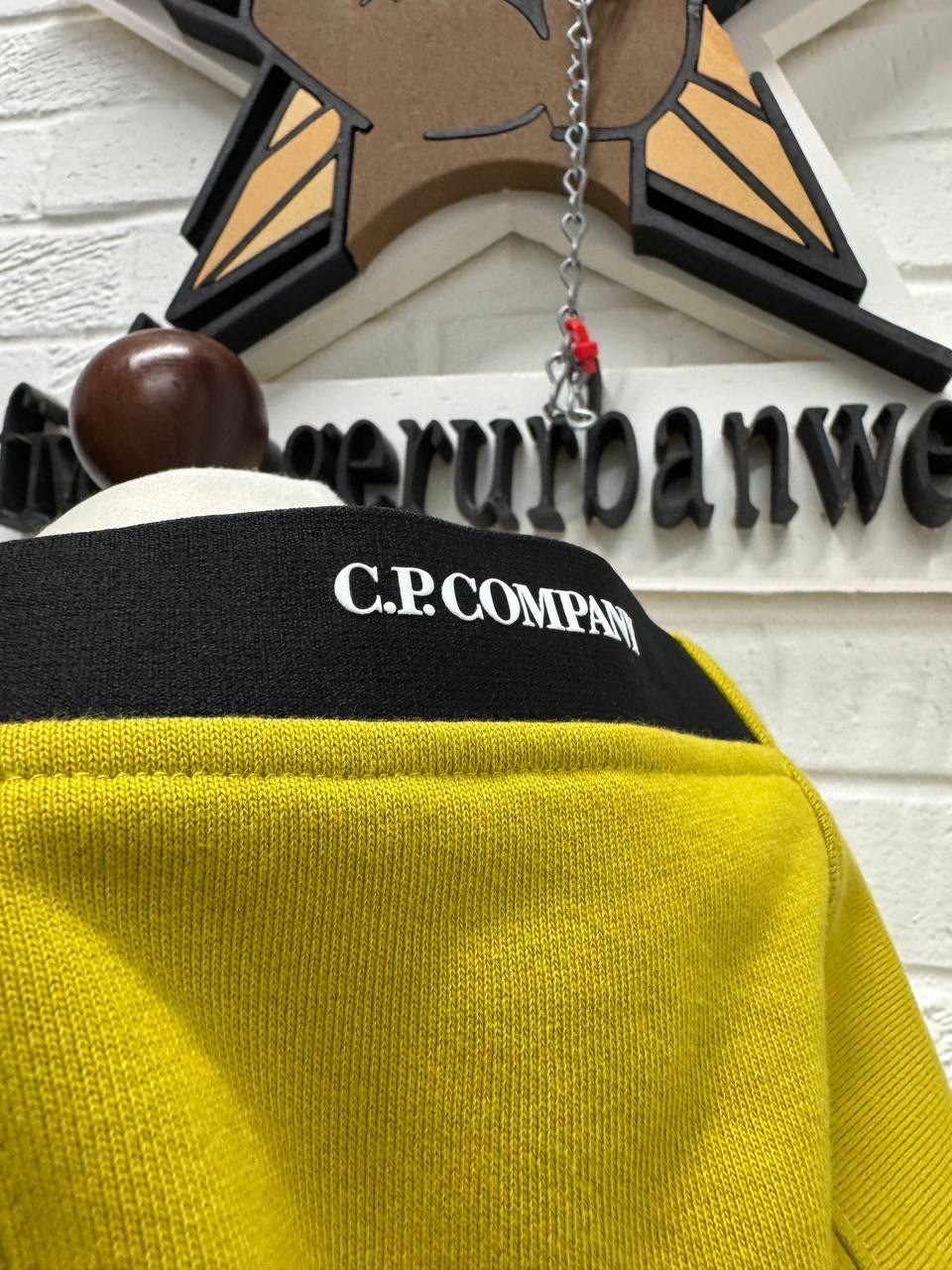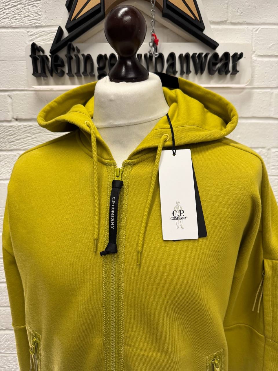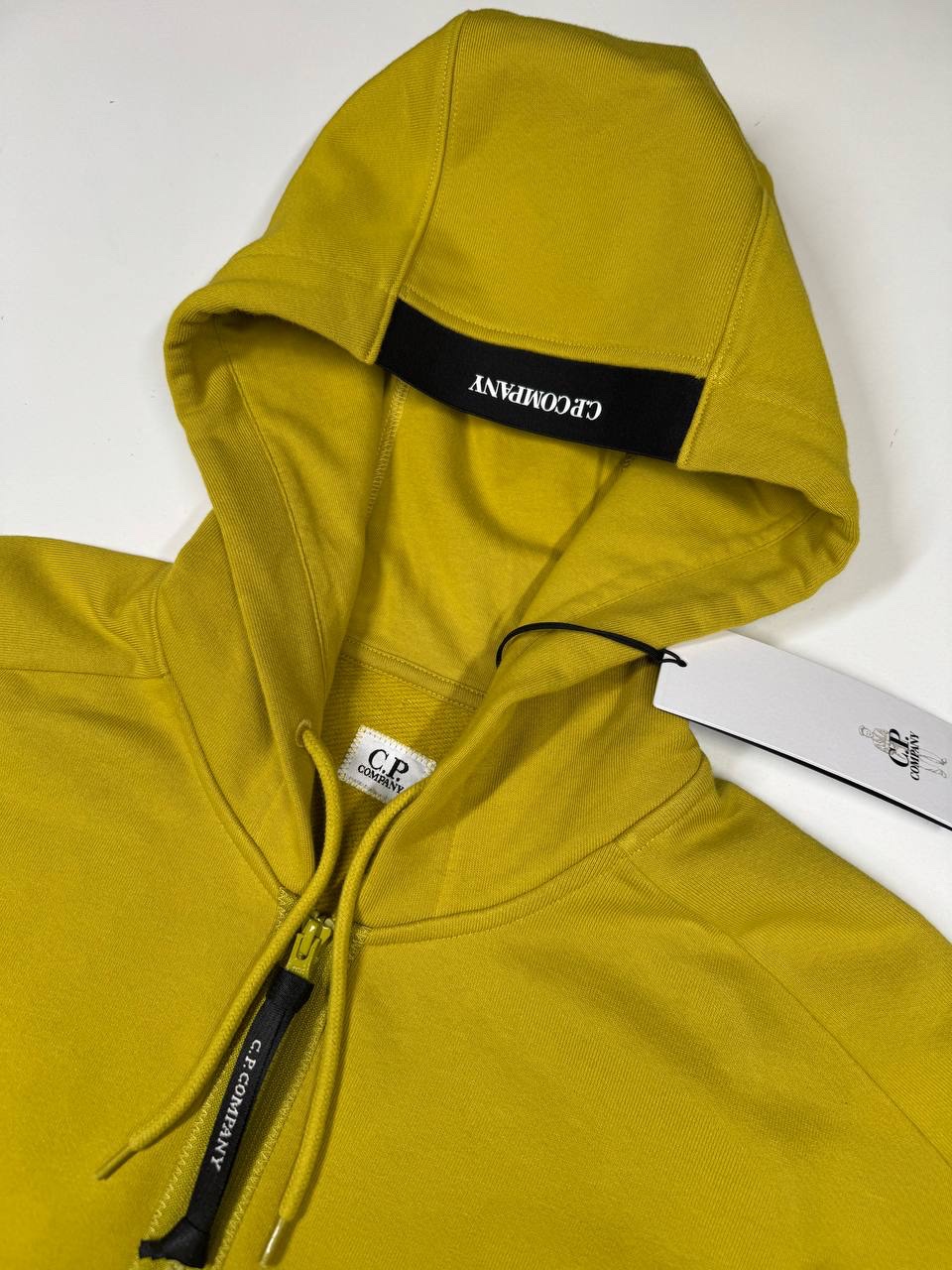 CP Company Diagonal Raised Fleece Hood Open Zipped Sweatshirt in Yellow. – Large / 23” p2p