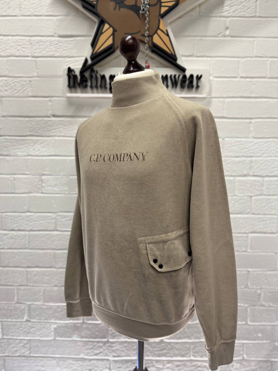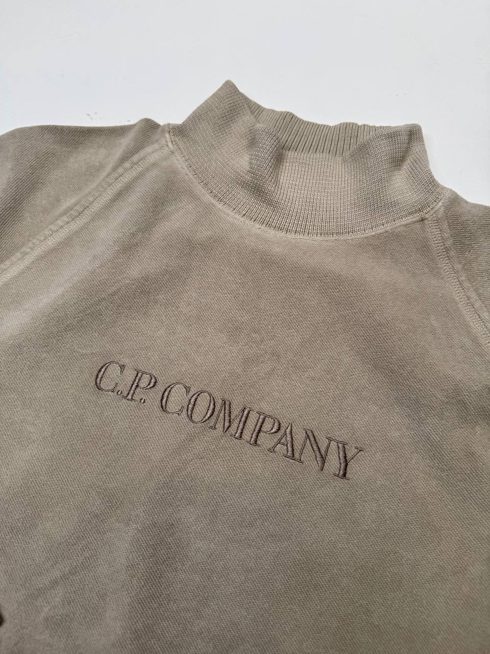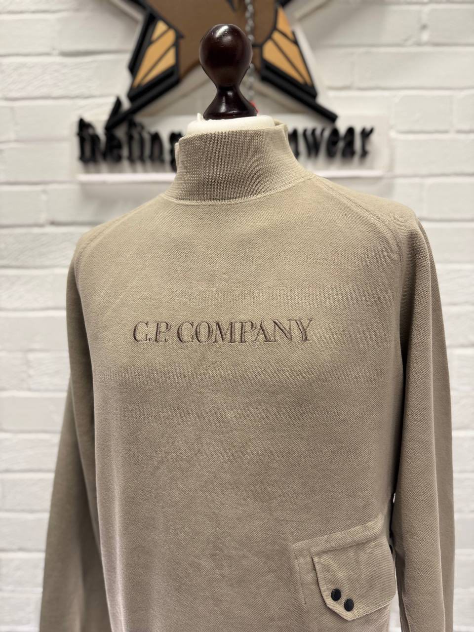 CP Company 273A Brushed & Emerized Diagonal Fleece Sweatshirt in vintage Khaki.