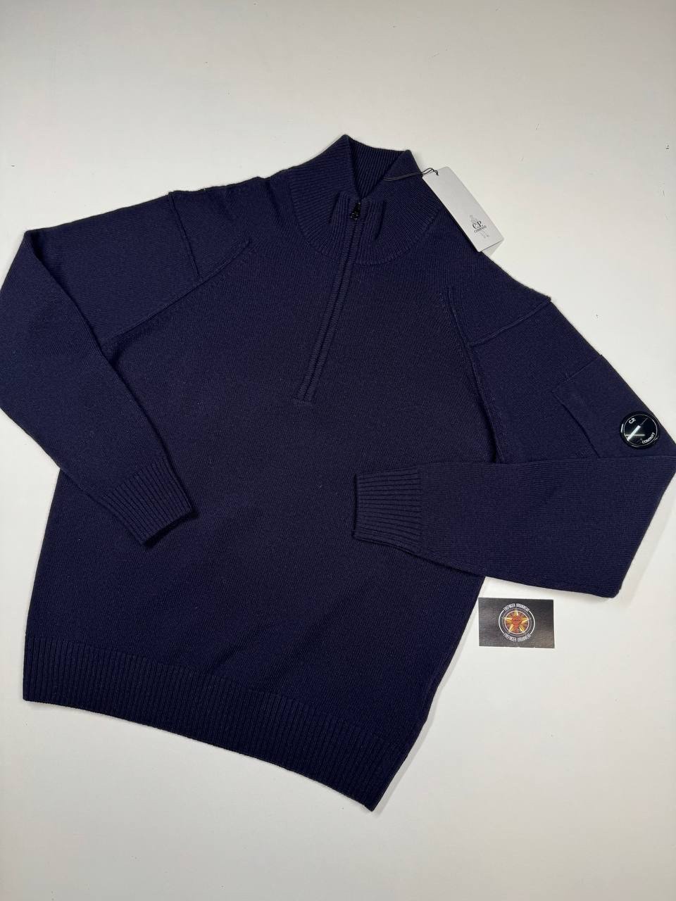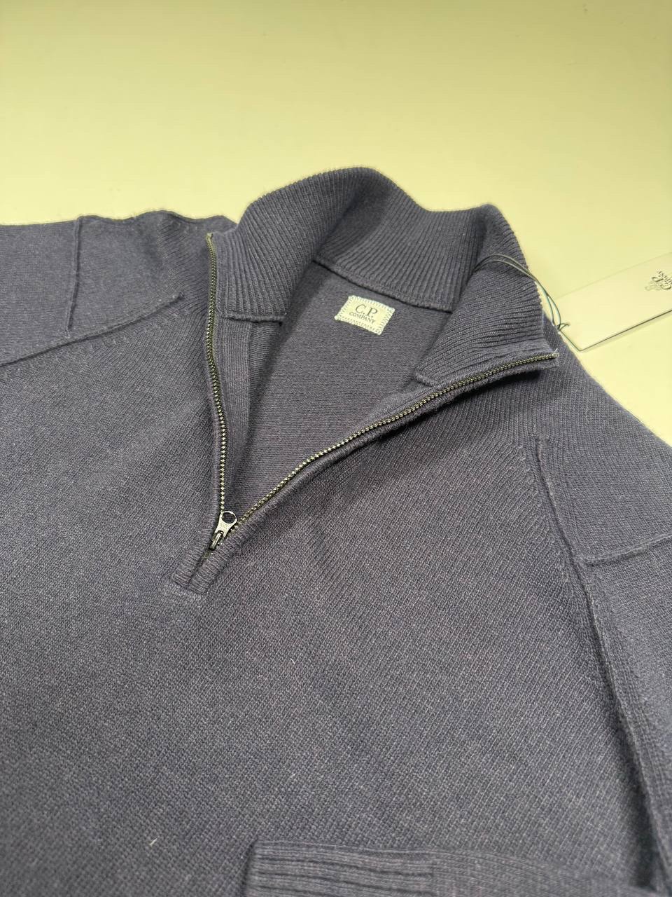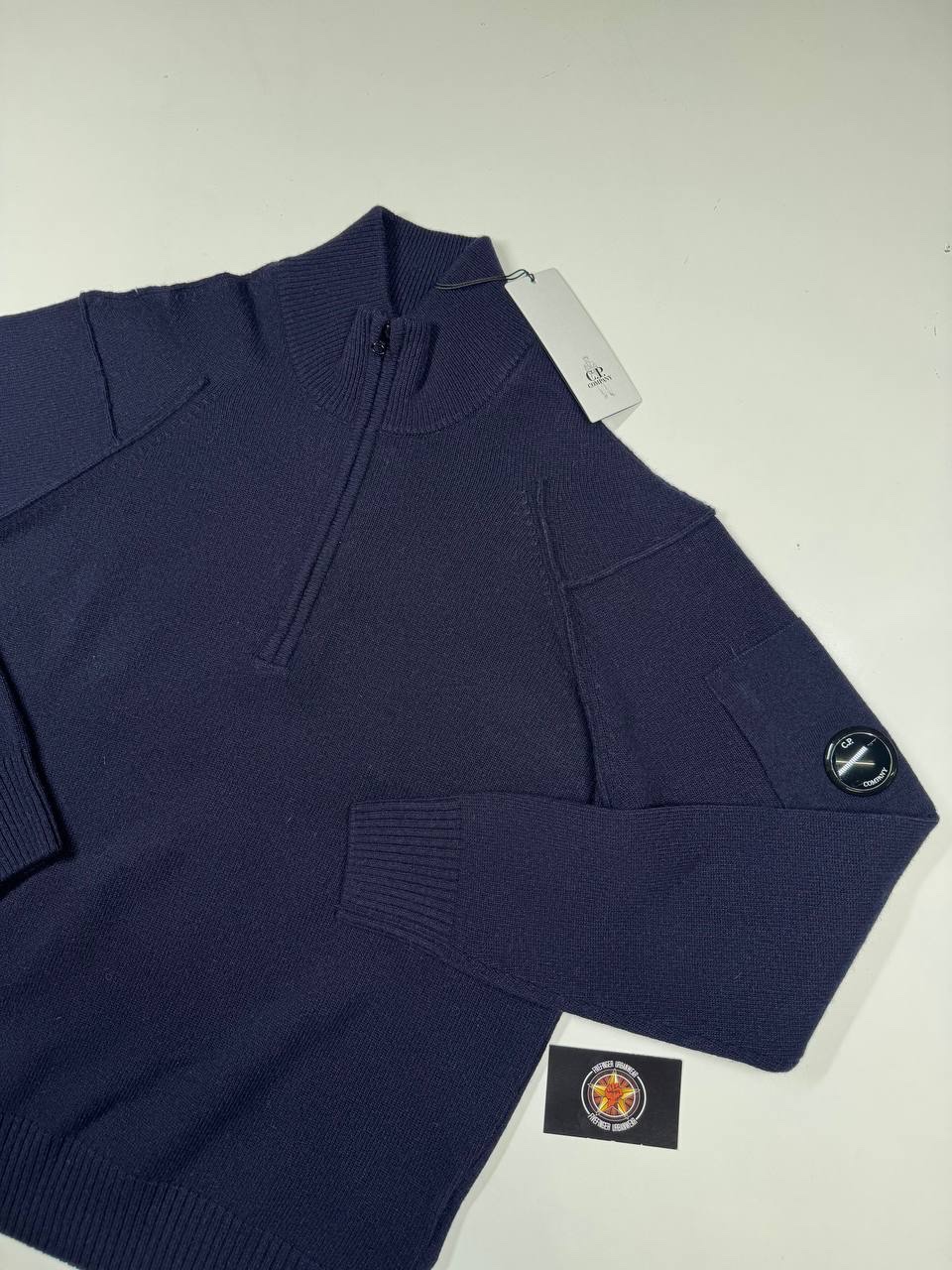 CP COMPANY 144A WOOL 1/4 ZIP LENS KNIT PULLOVER IN NIGHTSHADE NAVY / 799 – Large. / P2P 22”