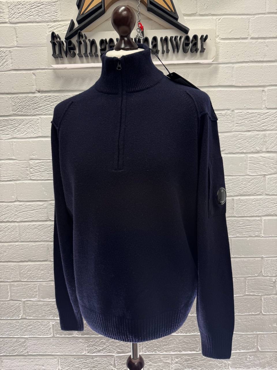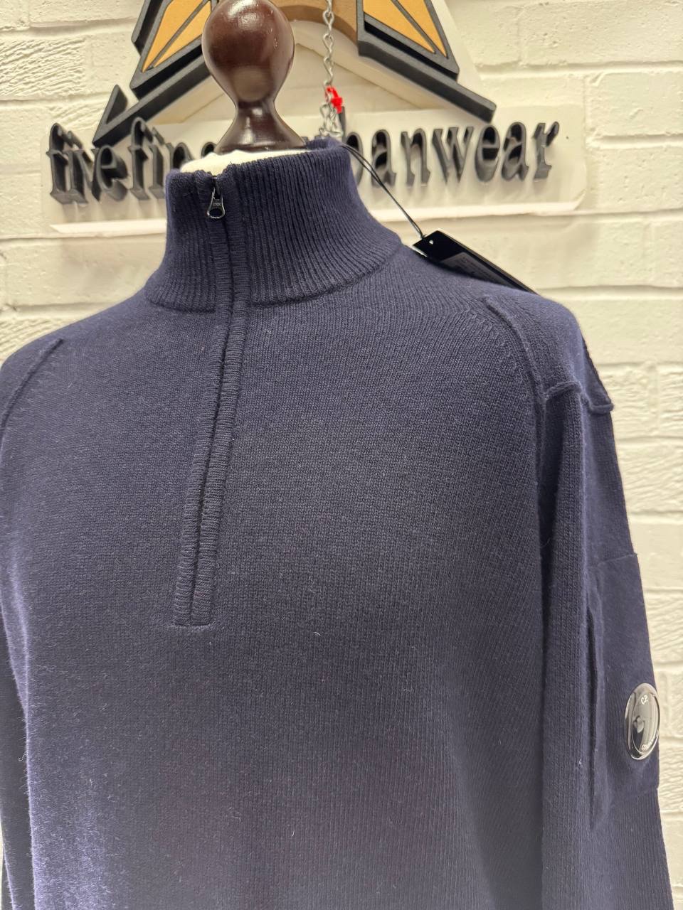 CP COMPANY 144A WOOL 1/4 ZIP LENS KNIT PULLOVER IN NIGHTSHADE NAVY / 799′