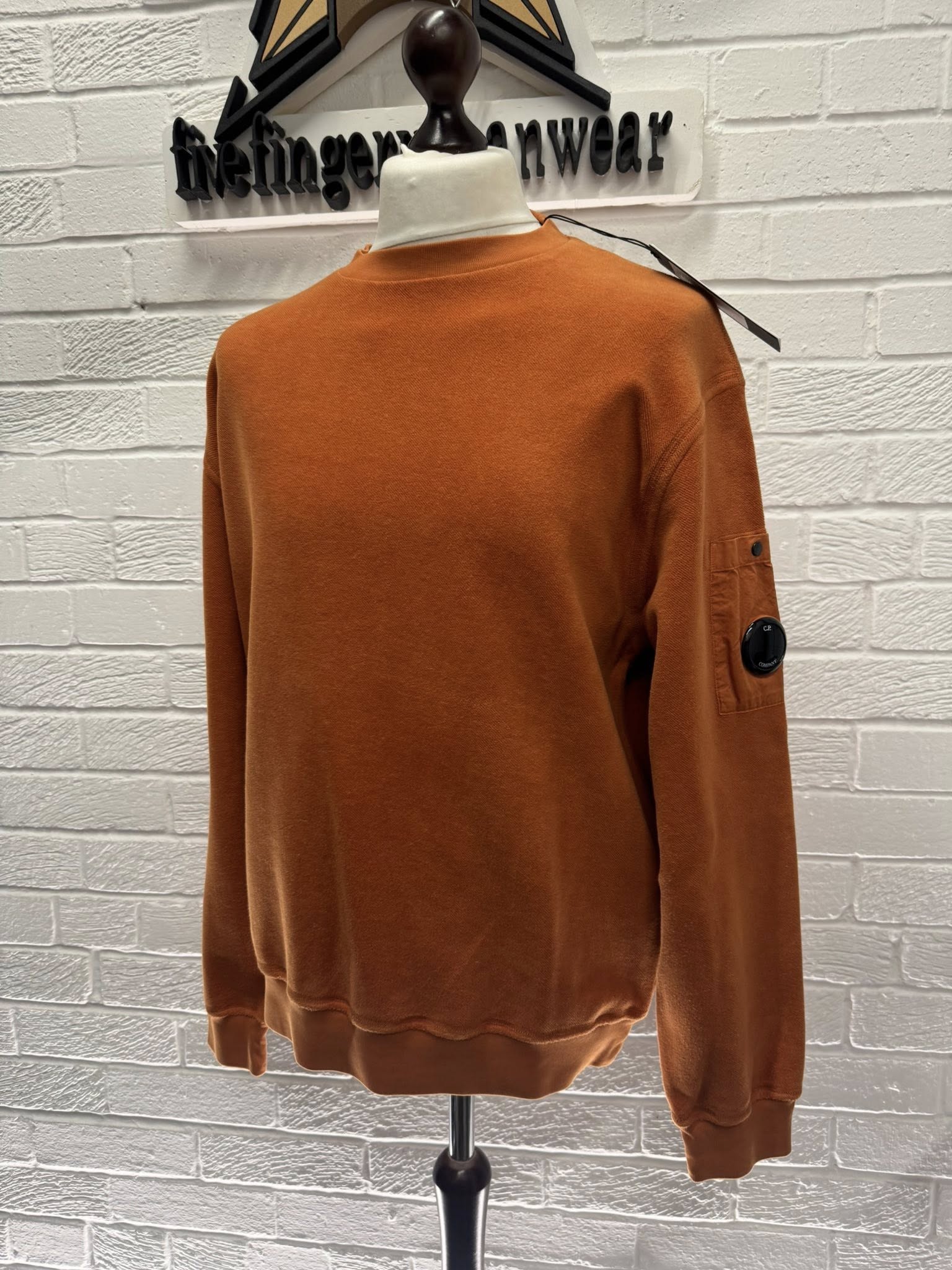 CP Company 285A Brushed & Emerized Diagonal Fleece Sweatshirt in Pumkin Orange