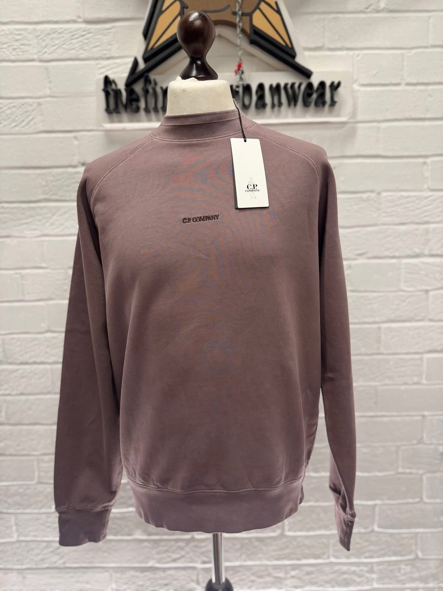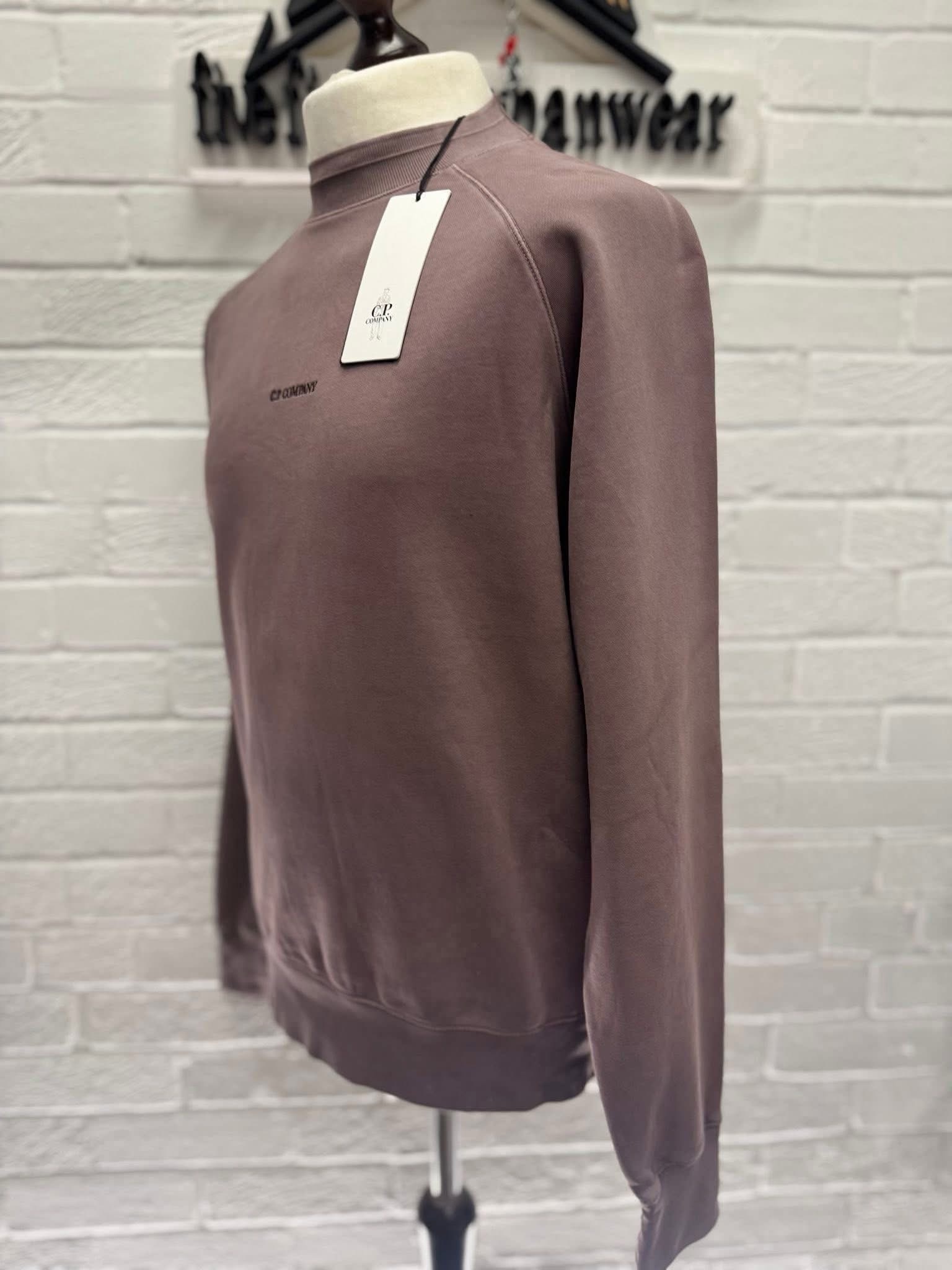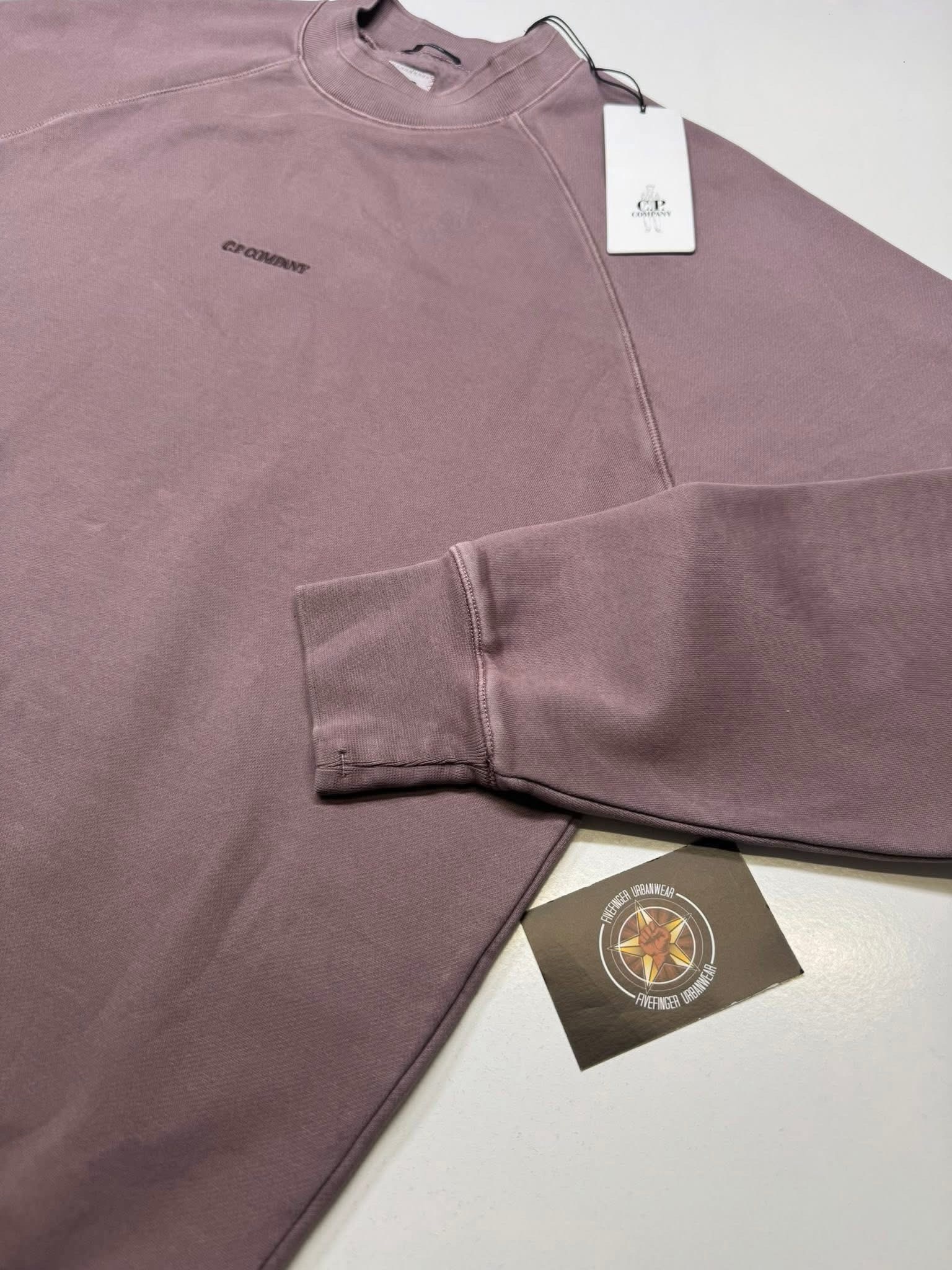 Cp Company 153A Brushed Emerized Diagonal Fleece Sweatshirt in Purple Dove Mauve.