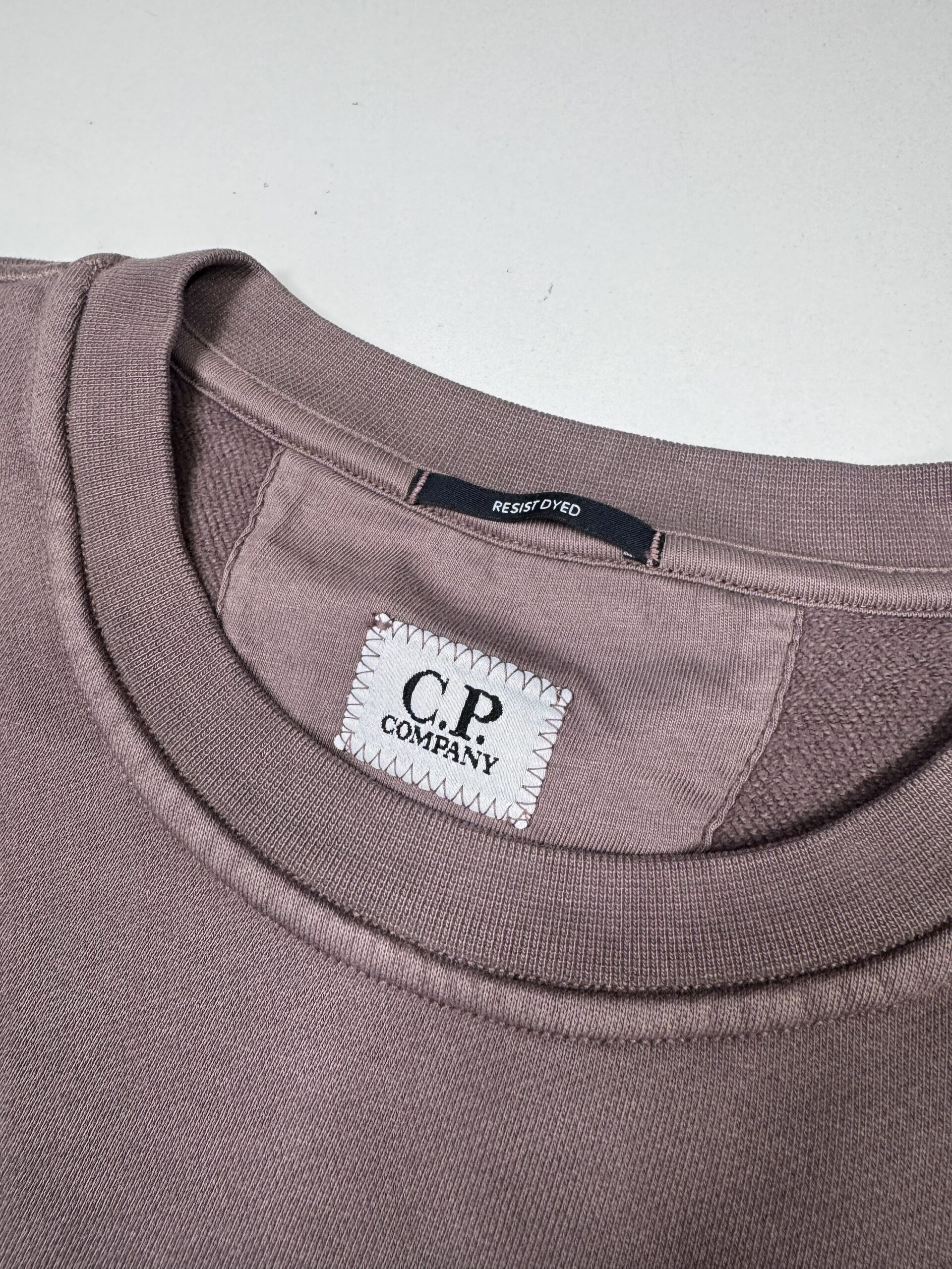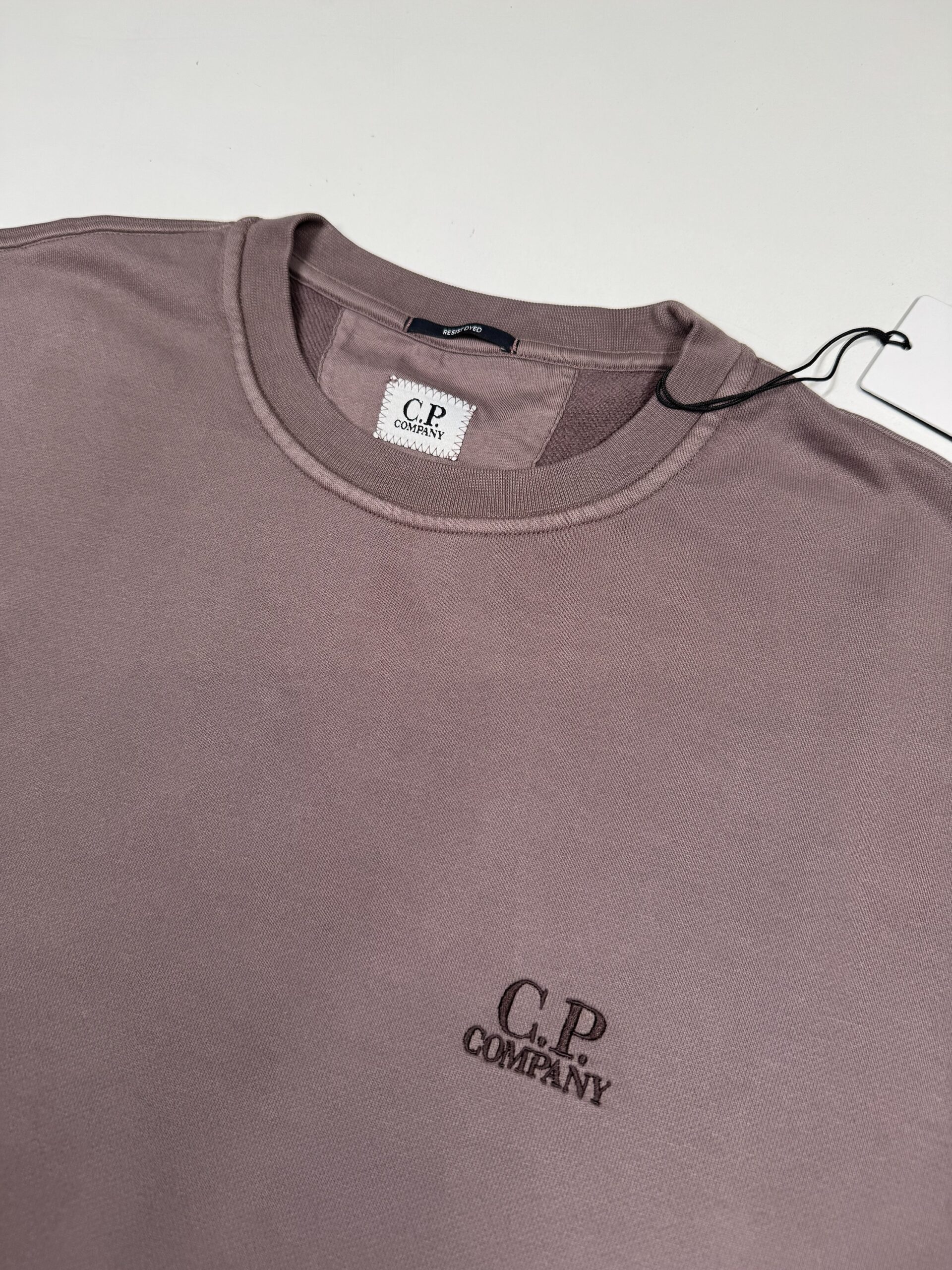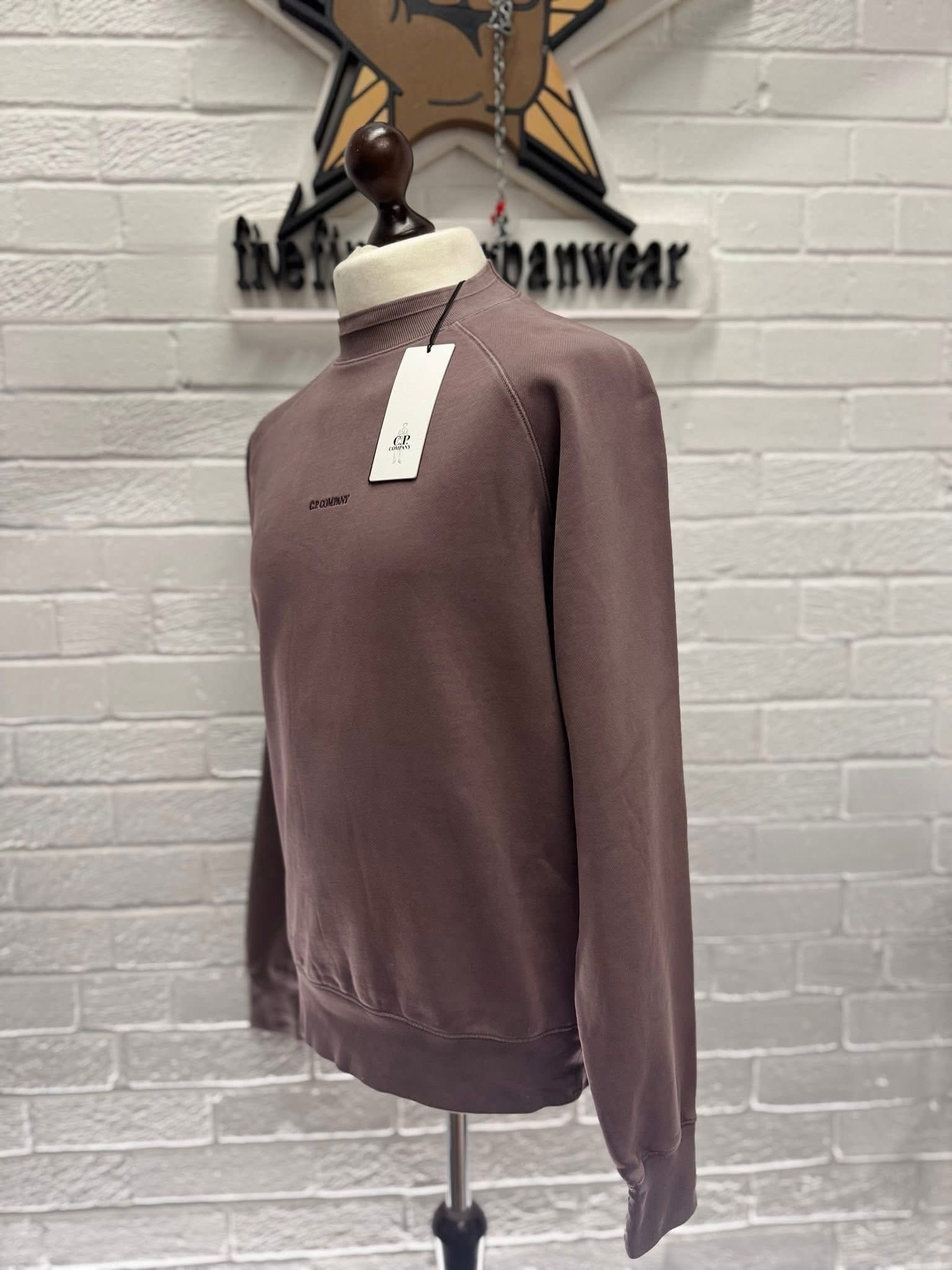 Cp Company 153A Brushed Emerized Diagonal Fleece Sweatshirt in Purple Dove Mauve.