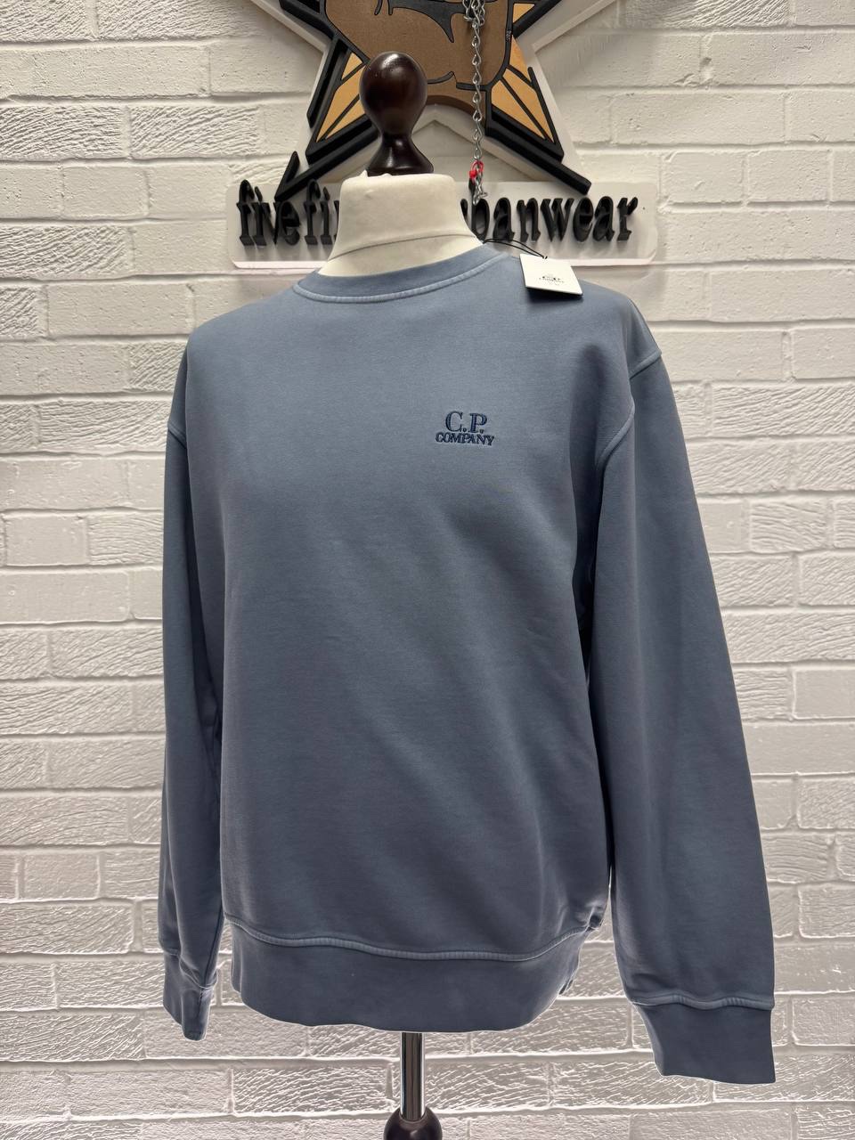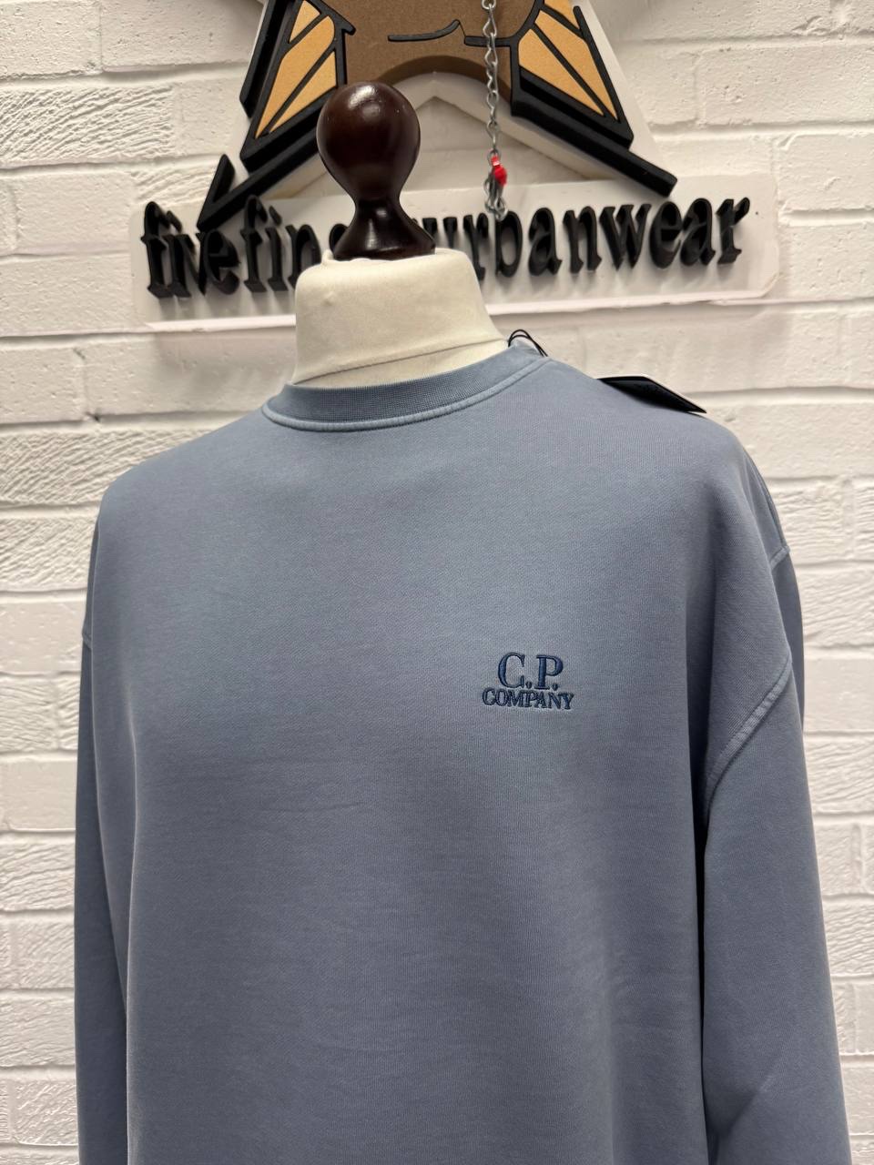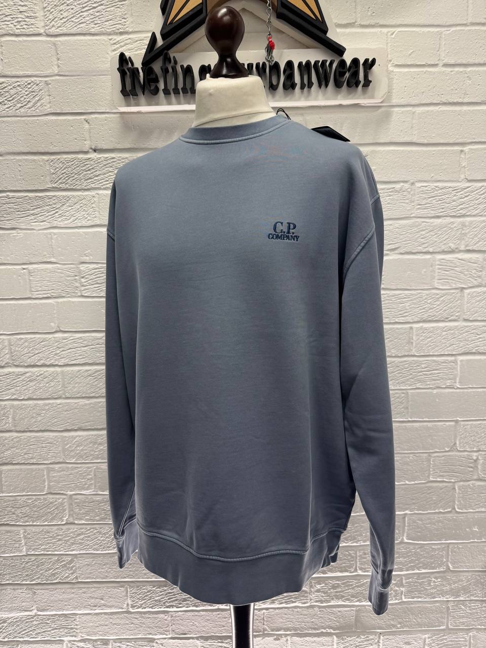 Cp Company Brushed Emerized Diagonal Fleece Sweatshirt in Blue