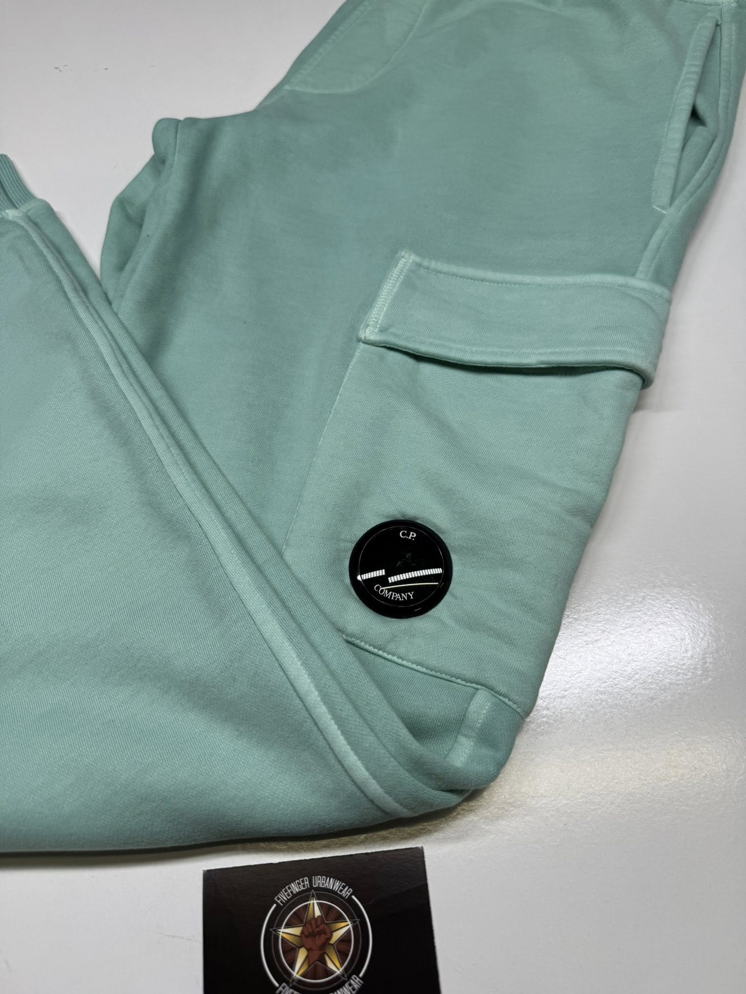 Classic track pants crafted in our diagonal raised fleece, a midweight loopback cotton option that combines absolute comfort with a substantial and hard-wearing feel. The pants also feature a drawstring waist, cuffed leg opening and a single cargo pocket with a C.P. Company Lens detail.