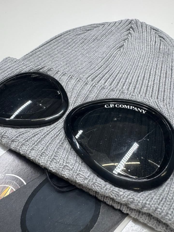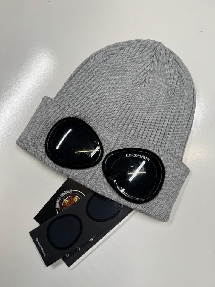 CP COMPANY COTTON GOGGLE BEANIE IN GREY