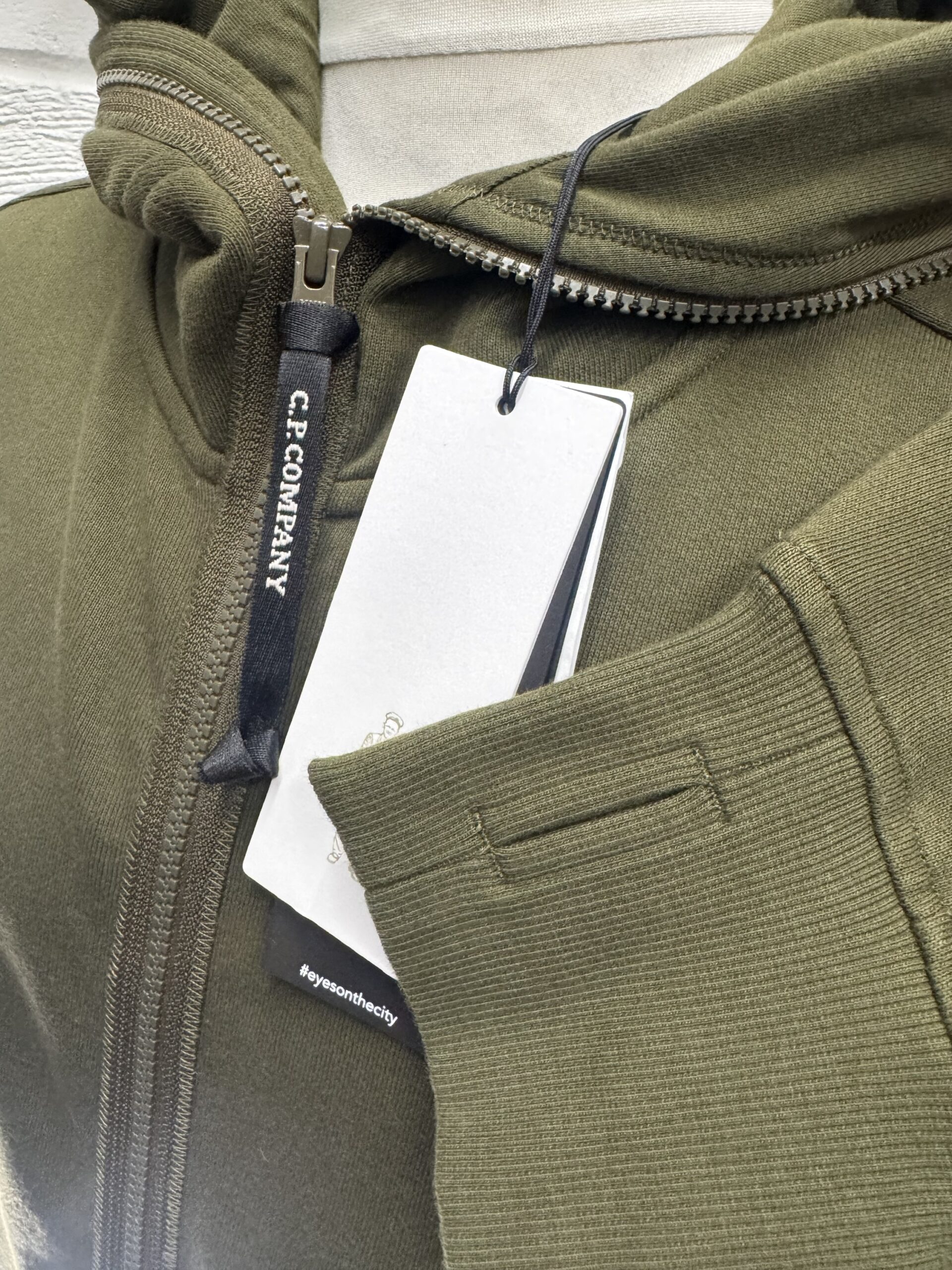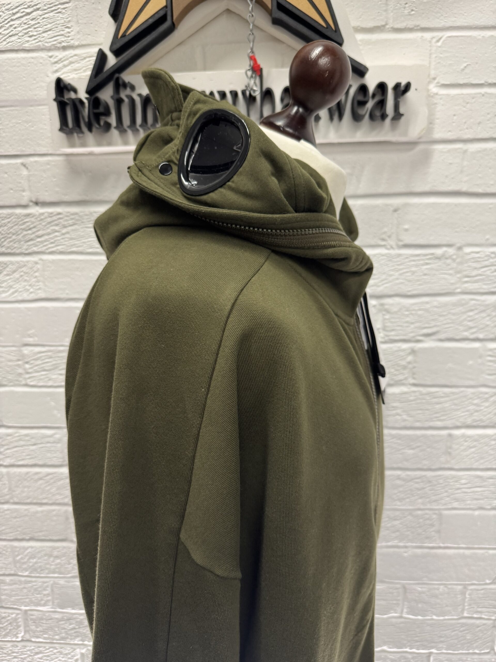 CP Company 141A Diagonal Raised Fleece goggle Hood Open Zipped Sweatshirt – Green – XXXL / 26” P2P.