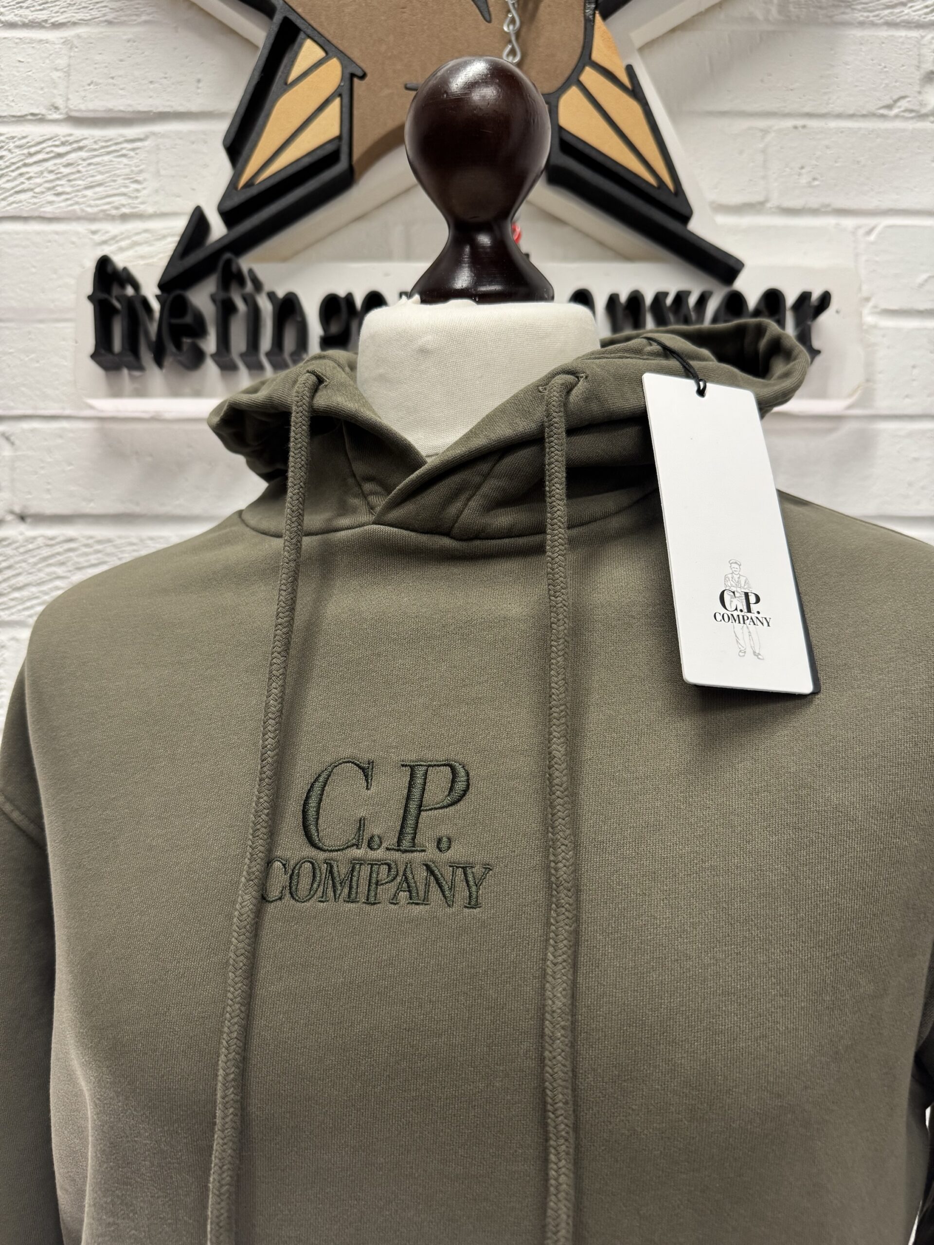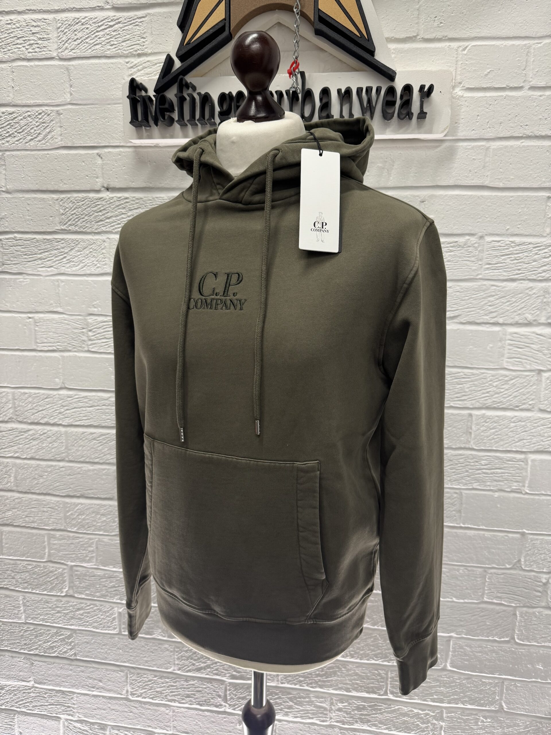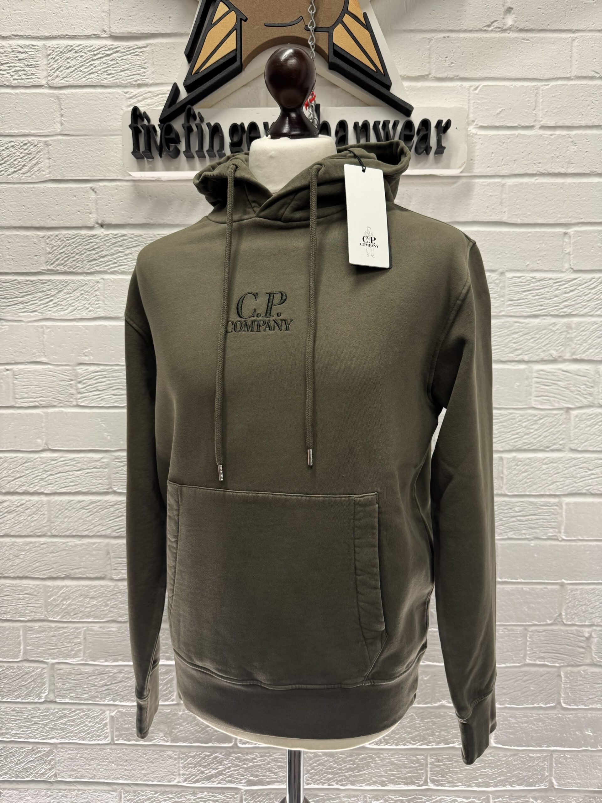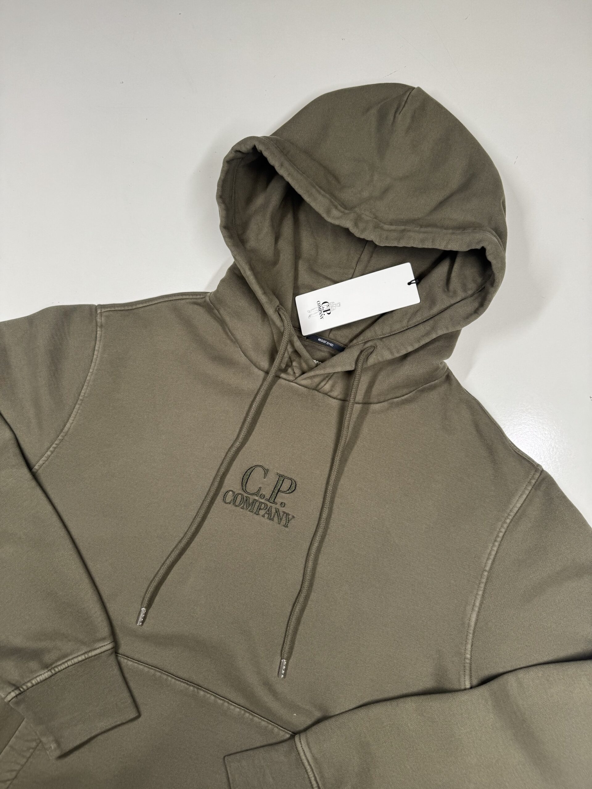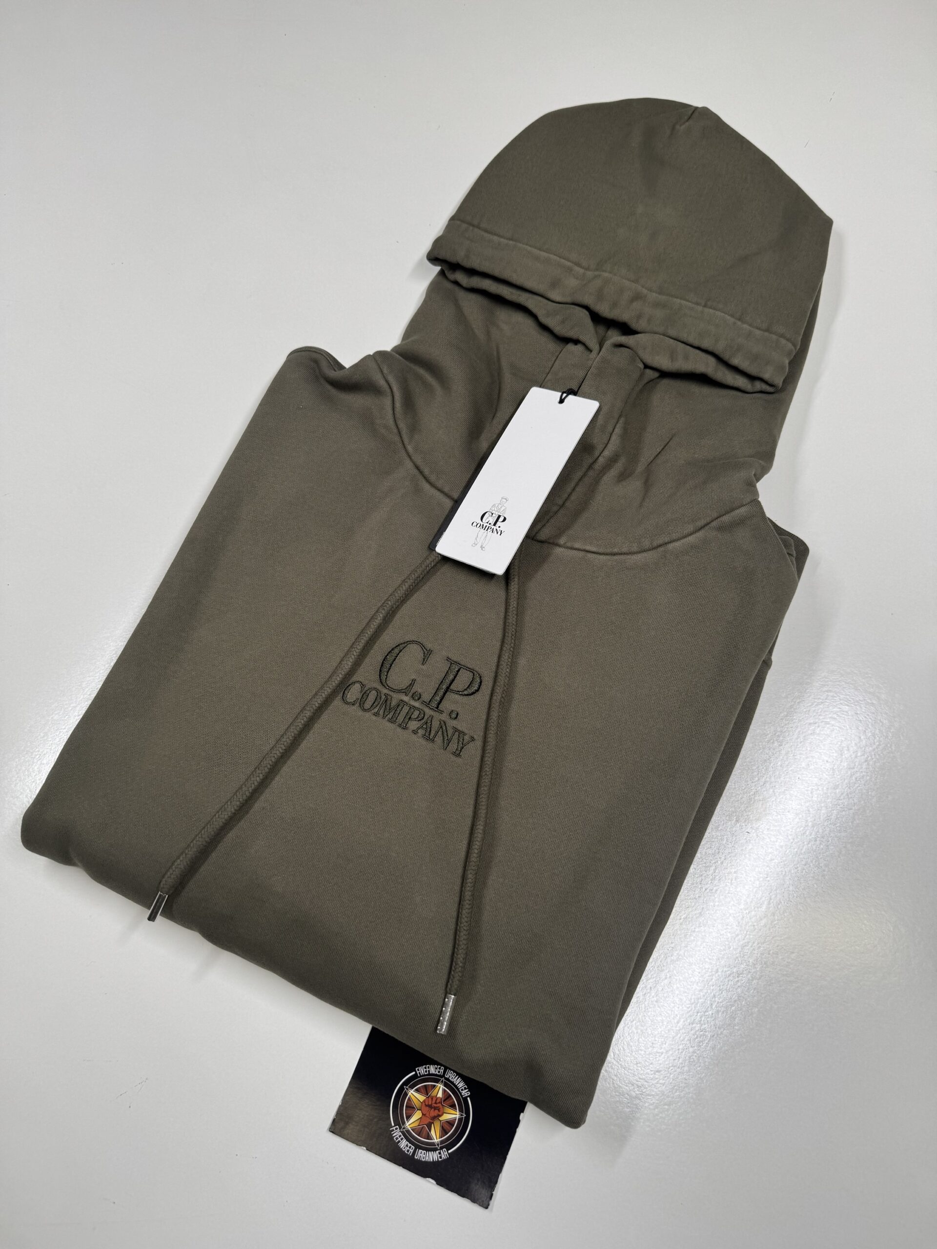 CP Company 061B Brushed & Emerized Diagonal Fleece Hoodie in Green / 674