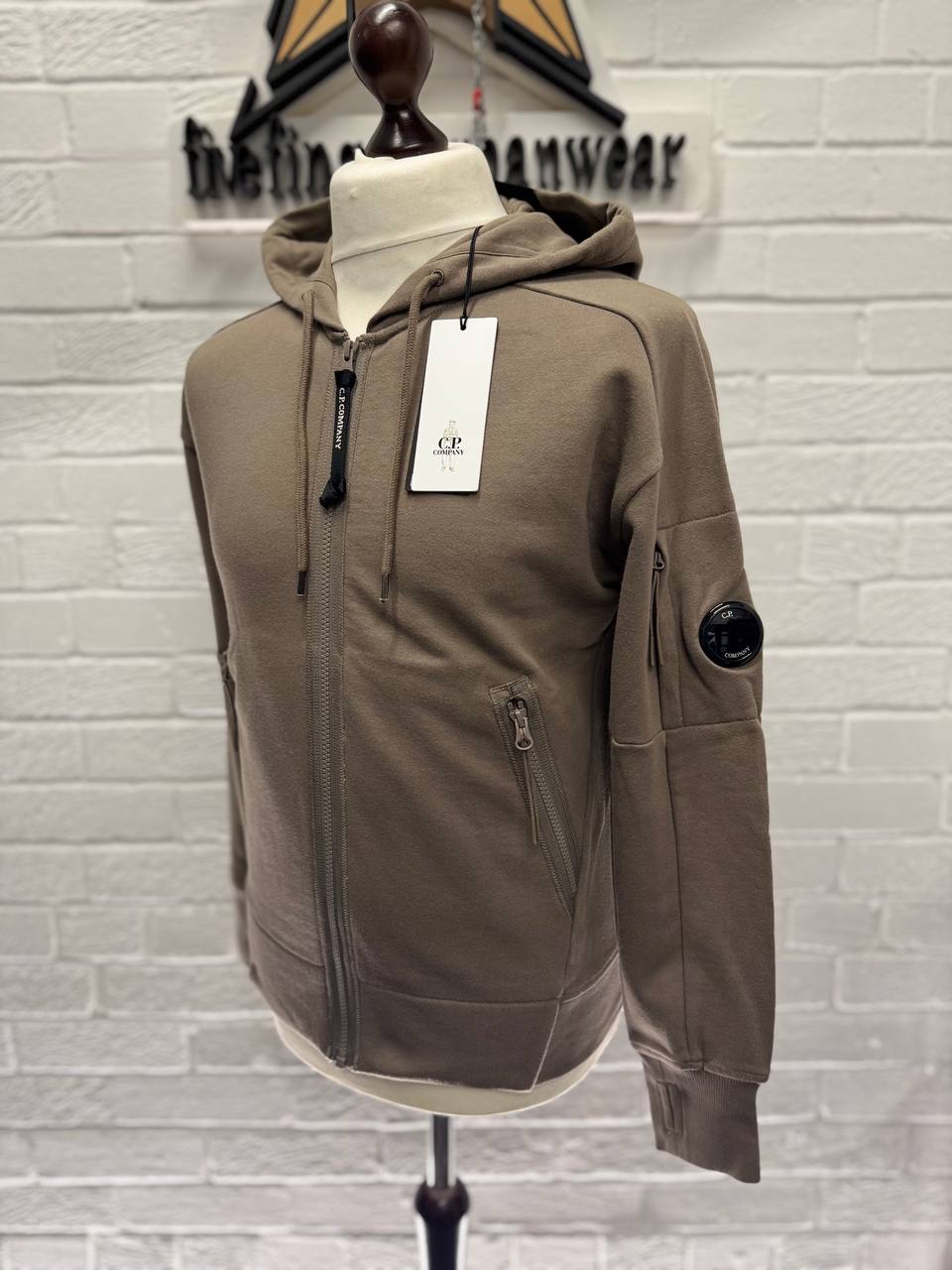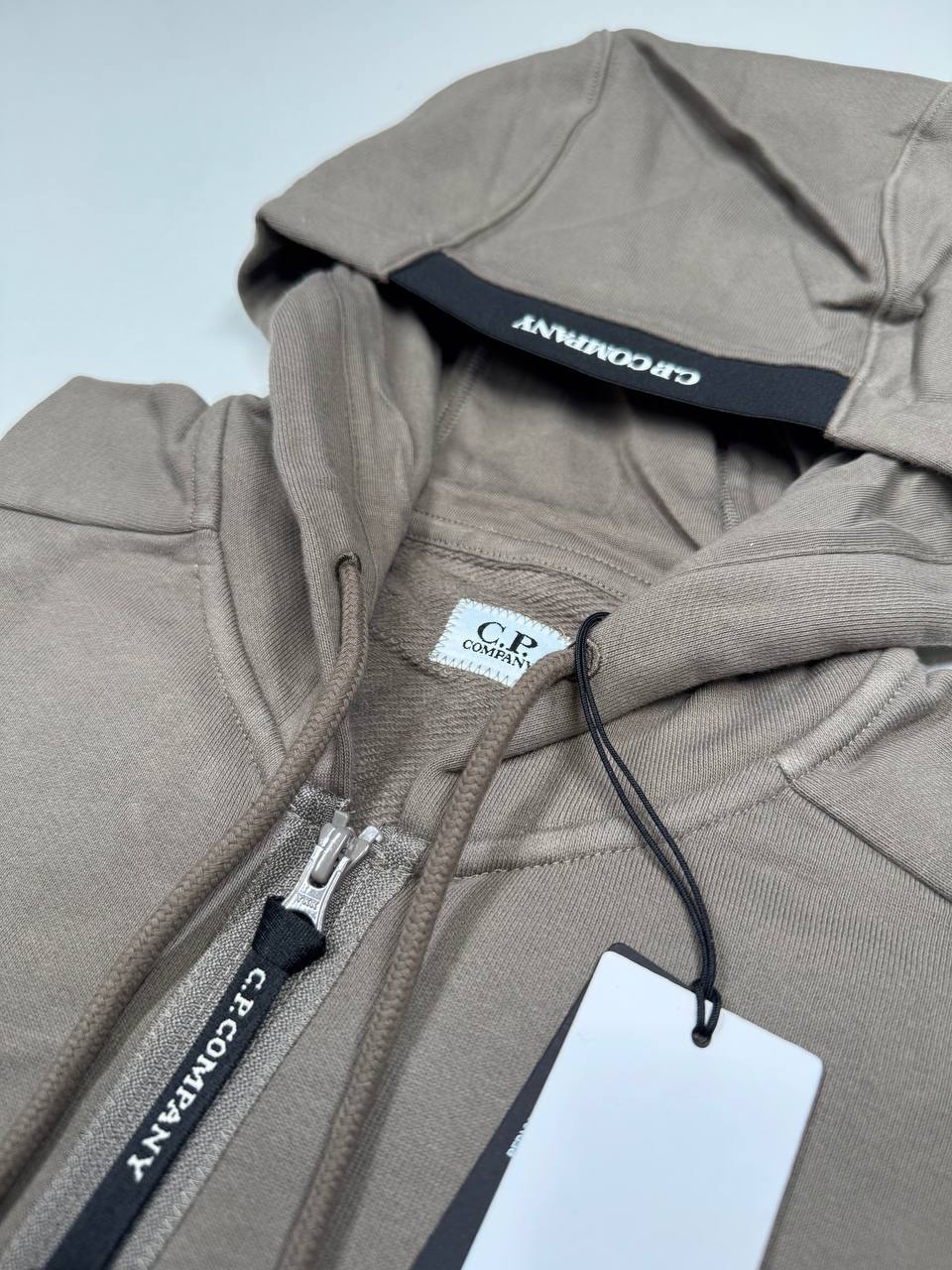 CP Company Diagonal Raised Fleece Hood Open Zipped Sweatshirt in Walnut.