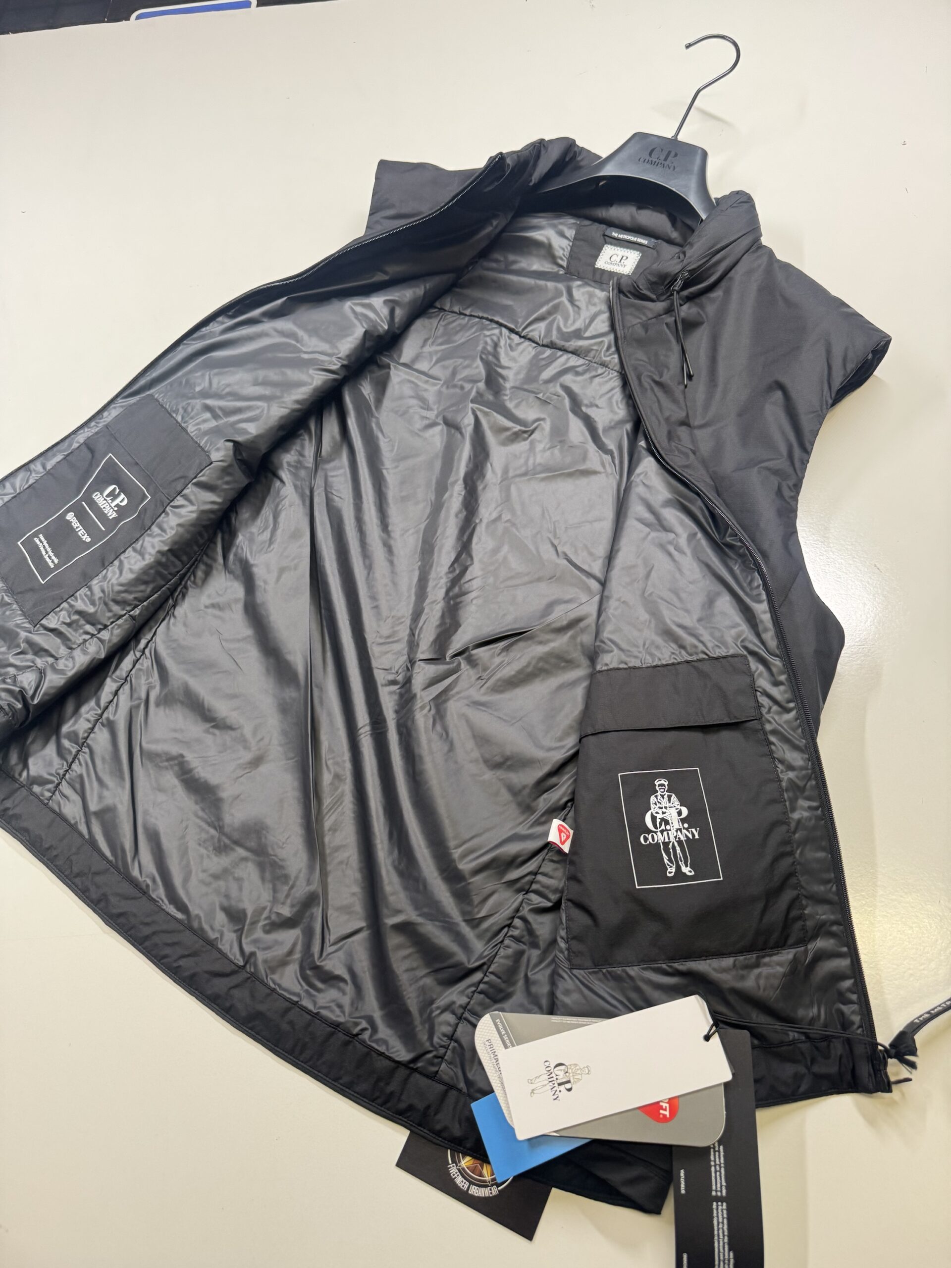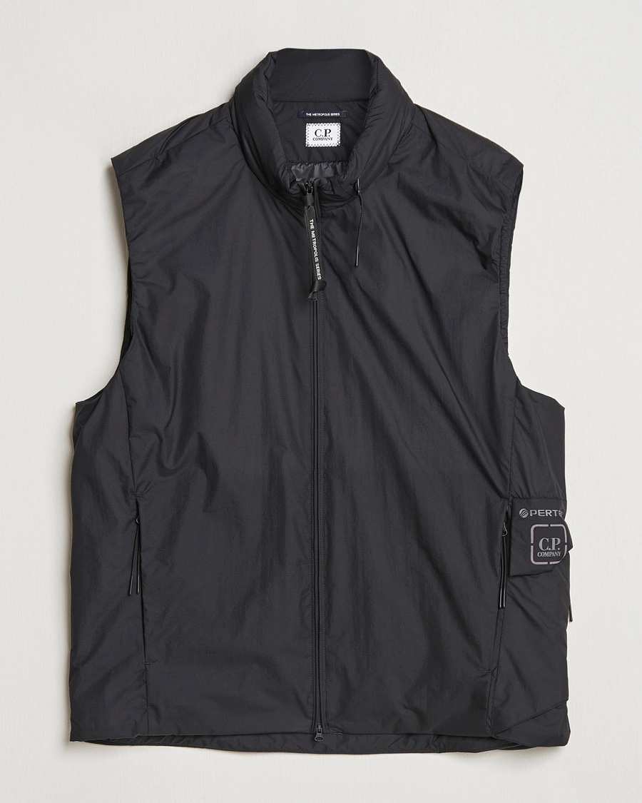 The metropolis series vest in primaloft with zip closure pockets and removable hood