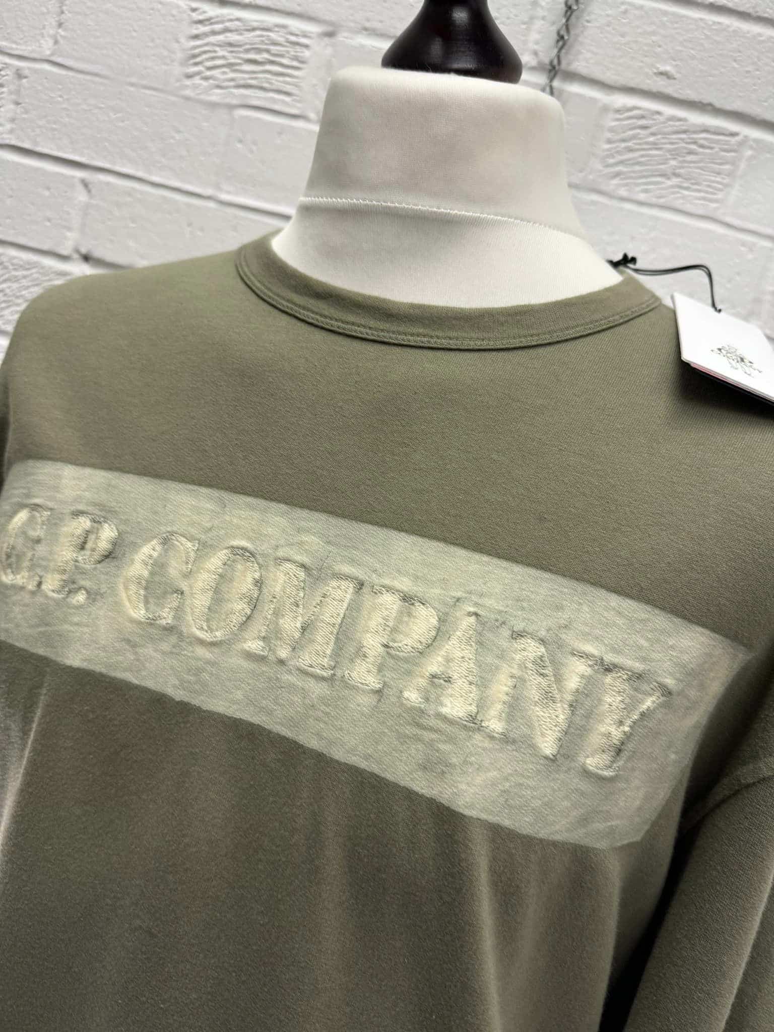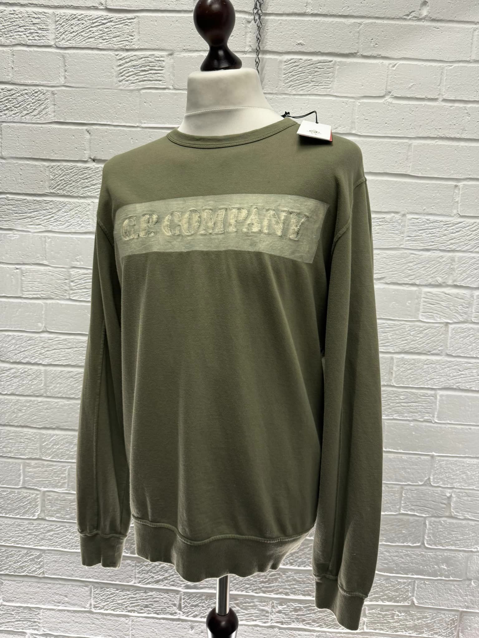 CP Company Light Fleece Crew Sweatshirt in Green • Reg fit • Certilogo • Crew neck – Large / p2p 22”
