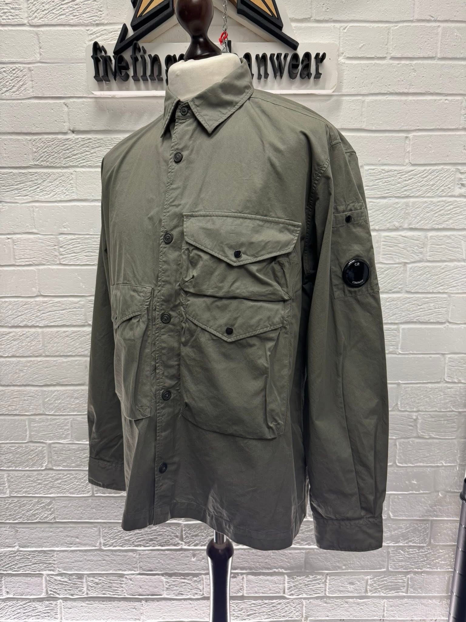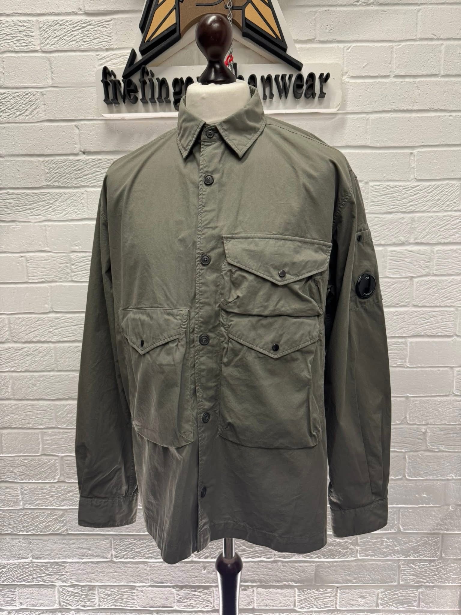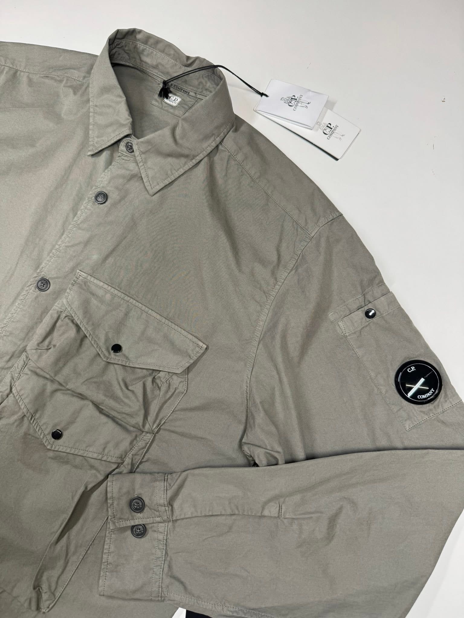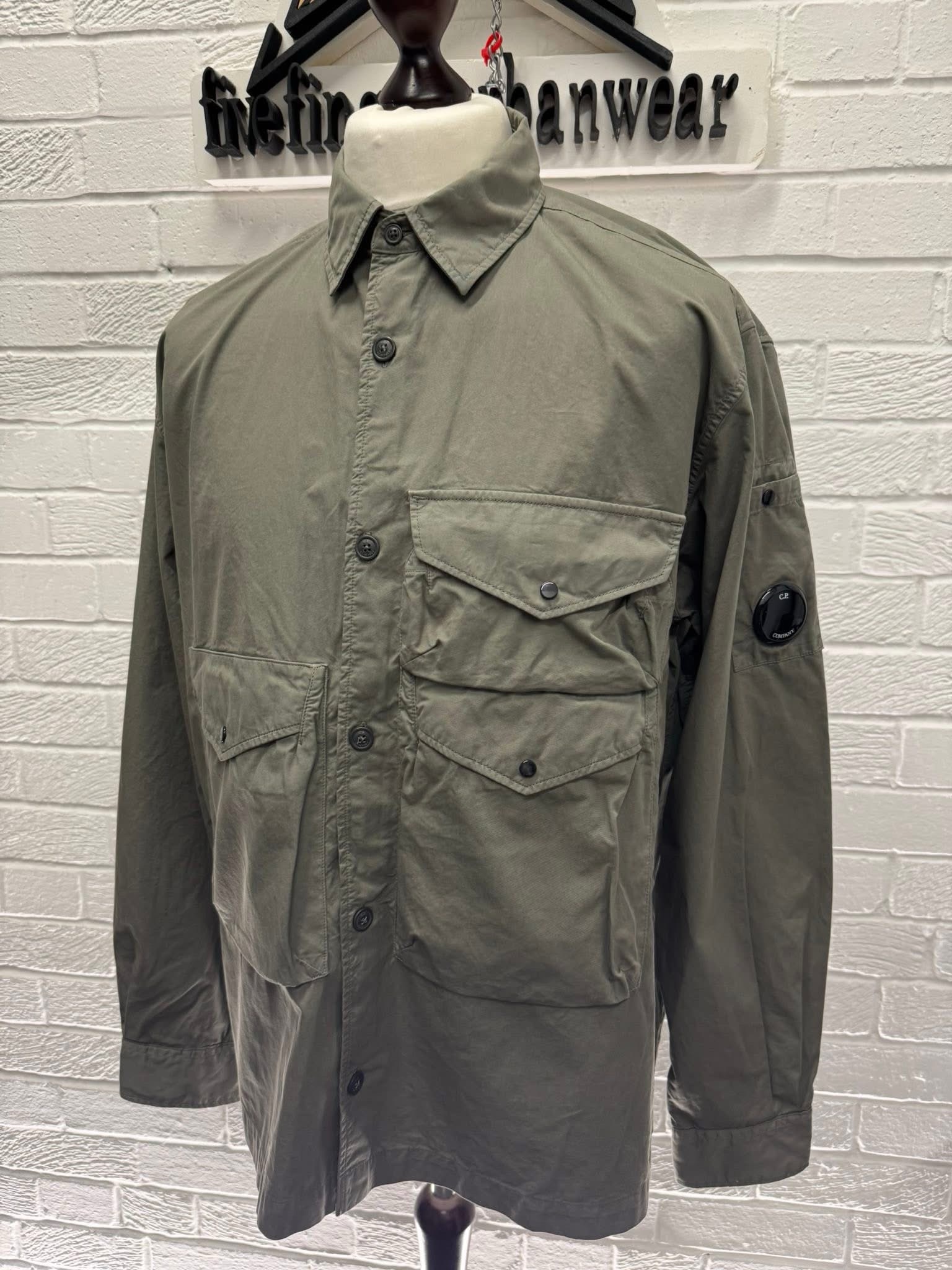 CP COMPANY ORGANIC GABARDINE BUTTONED UTILITY OVERSHIRT IN GRAPE LEAF / 674