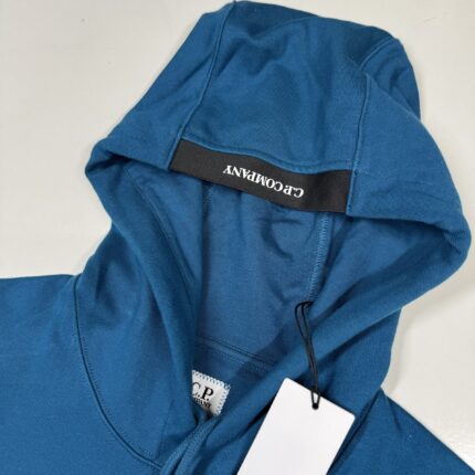 CP COMPANY Diagonal Raised Fleece Hooded Sweatshirt in Teal Blue.