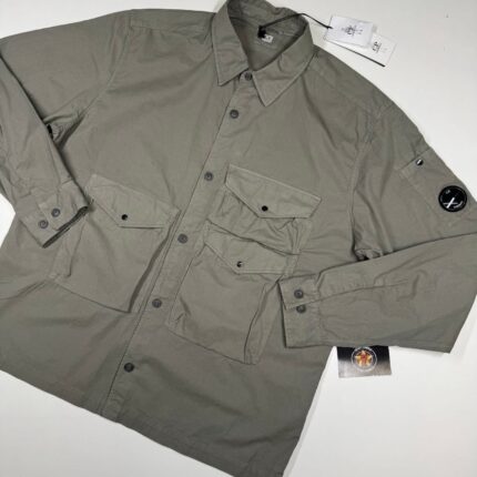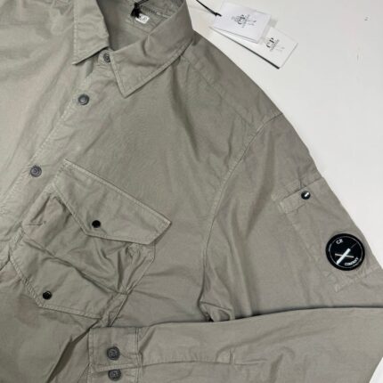 Overshirt with a classic collar and a full zip fastening, with a single chest flap pocket. The@ lined overshirt also features adjustable cuffs and the C.P. Company detail to pocket .Chrome-R is a 100% pre-consumer recycled version of our woven multifilament nylon, offering a great barrier against water and wind. Developed exclusively for garment dyeing, Chrome-R resists the pigmenting process, which generates lighter and more vibrant tones in the finished garment.