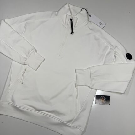 CP Company 027A Diagonal Raised Fleece 1/4 zip Sweatshirt - White / 103