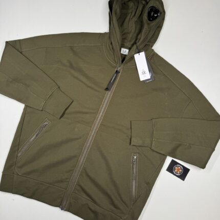 CP Company 062A Diagonal Raised Fleece goggle Hood Open Zipped Sweatshirt .
