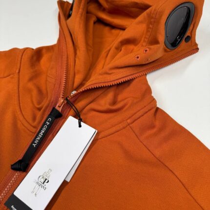 CP Company 062A Diagonal Raised Fleece goggle Hood Open Zipped Sweatshirt – pumpkin orange