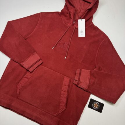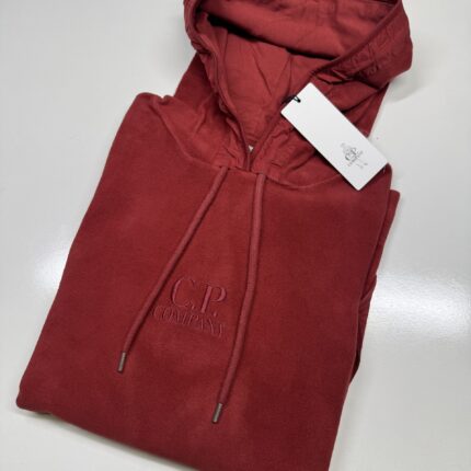 CP Company 262A Brushed & Emerized Diagonal Fleece Hoodie in scooter red.
