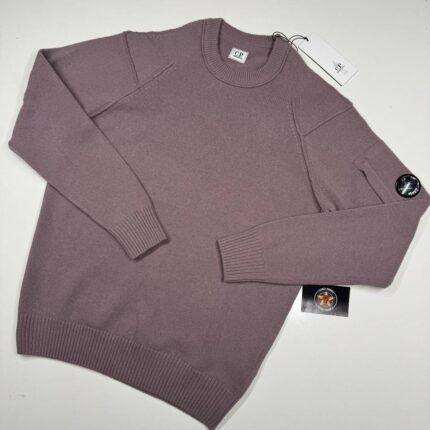 CP COMPANY 047A LAMBSWOOL LENS KNIT SWEATSHIRT IN PURPLE DOVE – Large / P2P 22”.