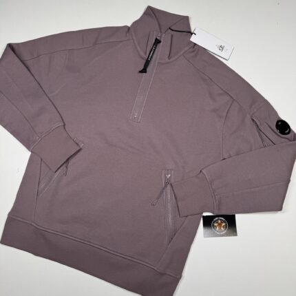 CP company Light Fleece 1/4 zip Sweatshirt in Potent Purple ————– 1/4 zip Arm Lens Certilogo Regular fitting