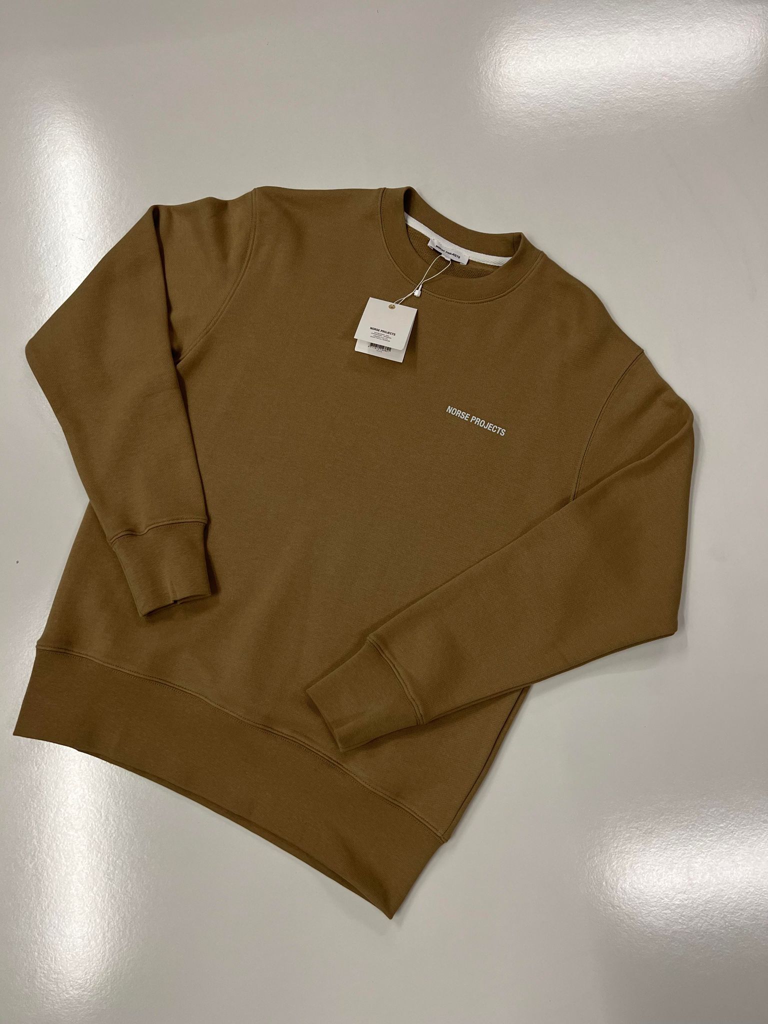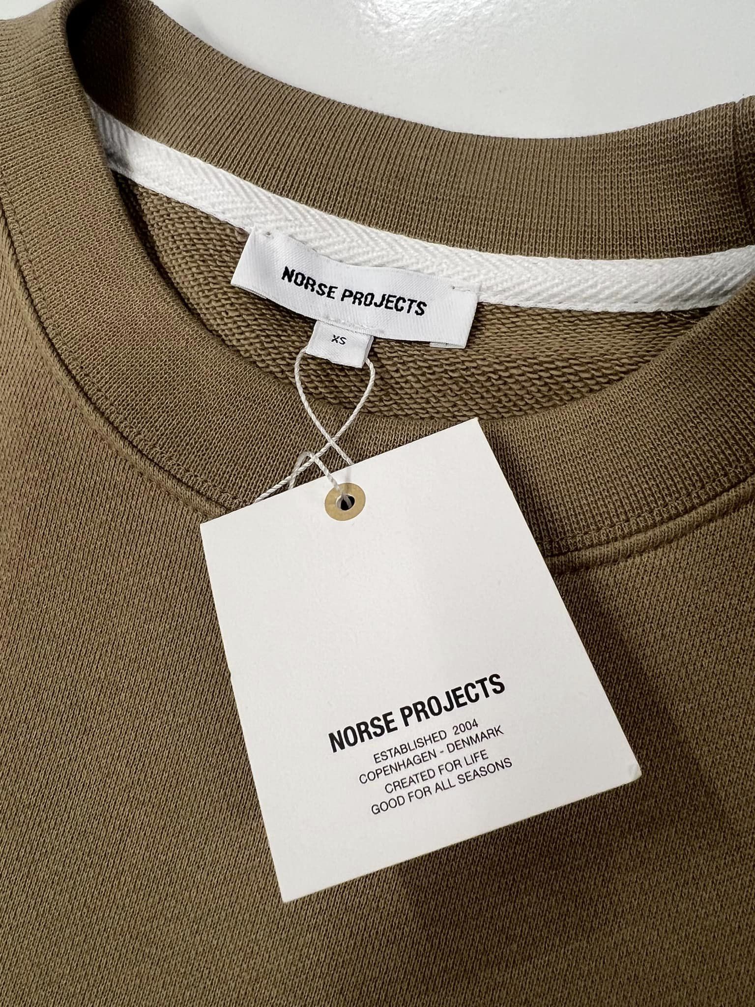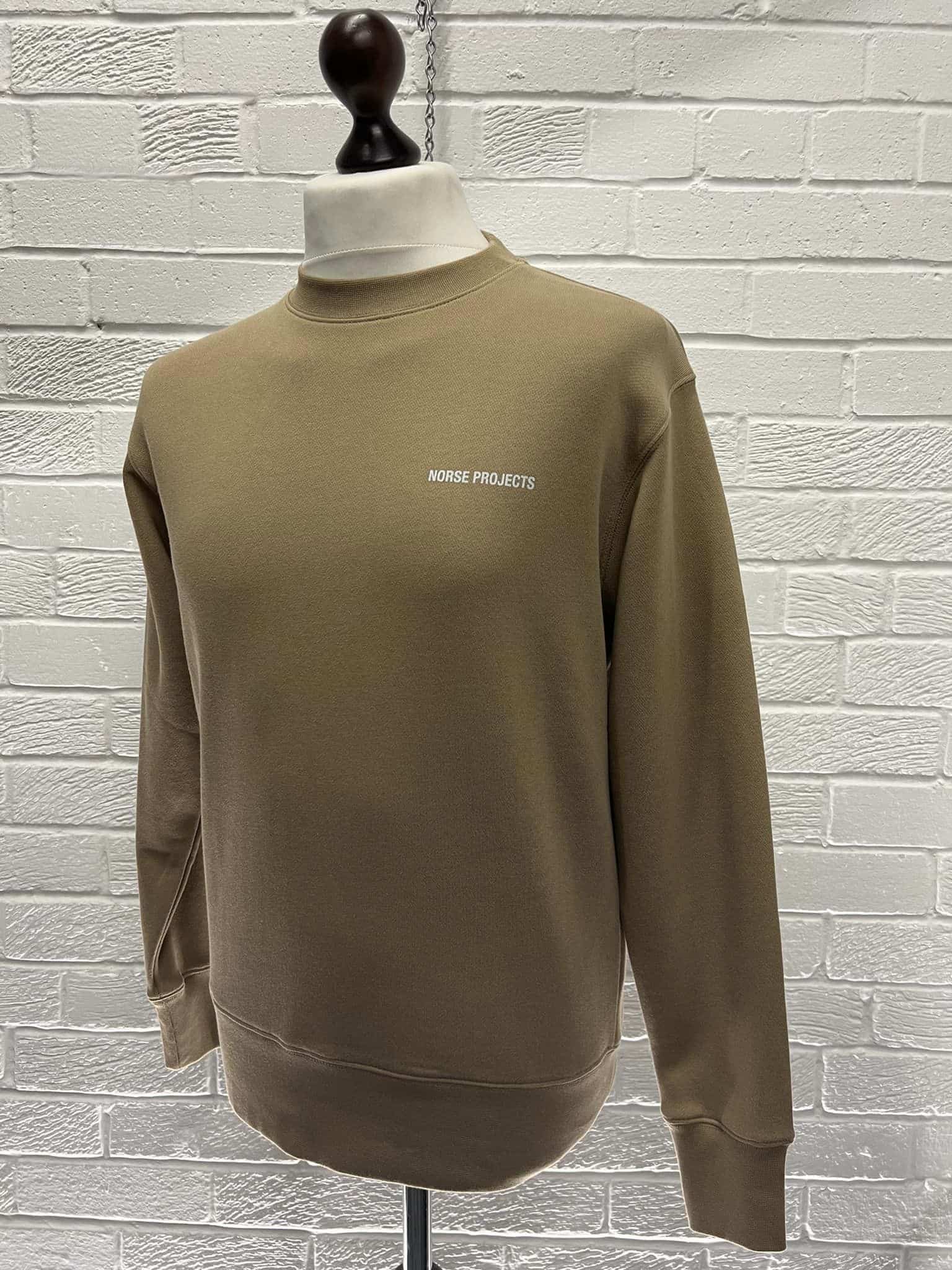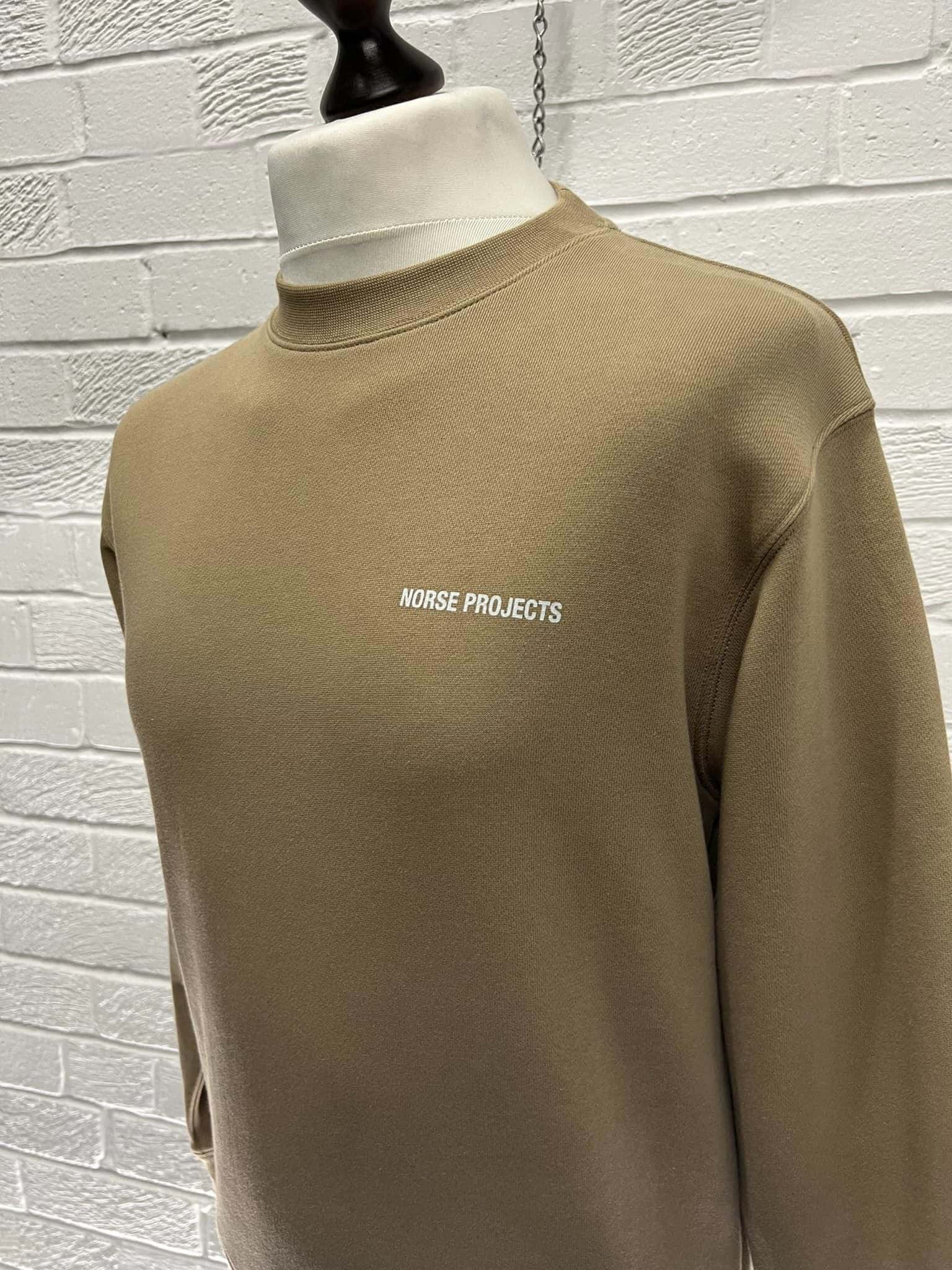 NORSE PROJECTS men’s Arne logo crew sweatshirt in utility khaki – XS / p2p 21”