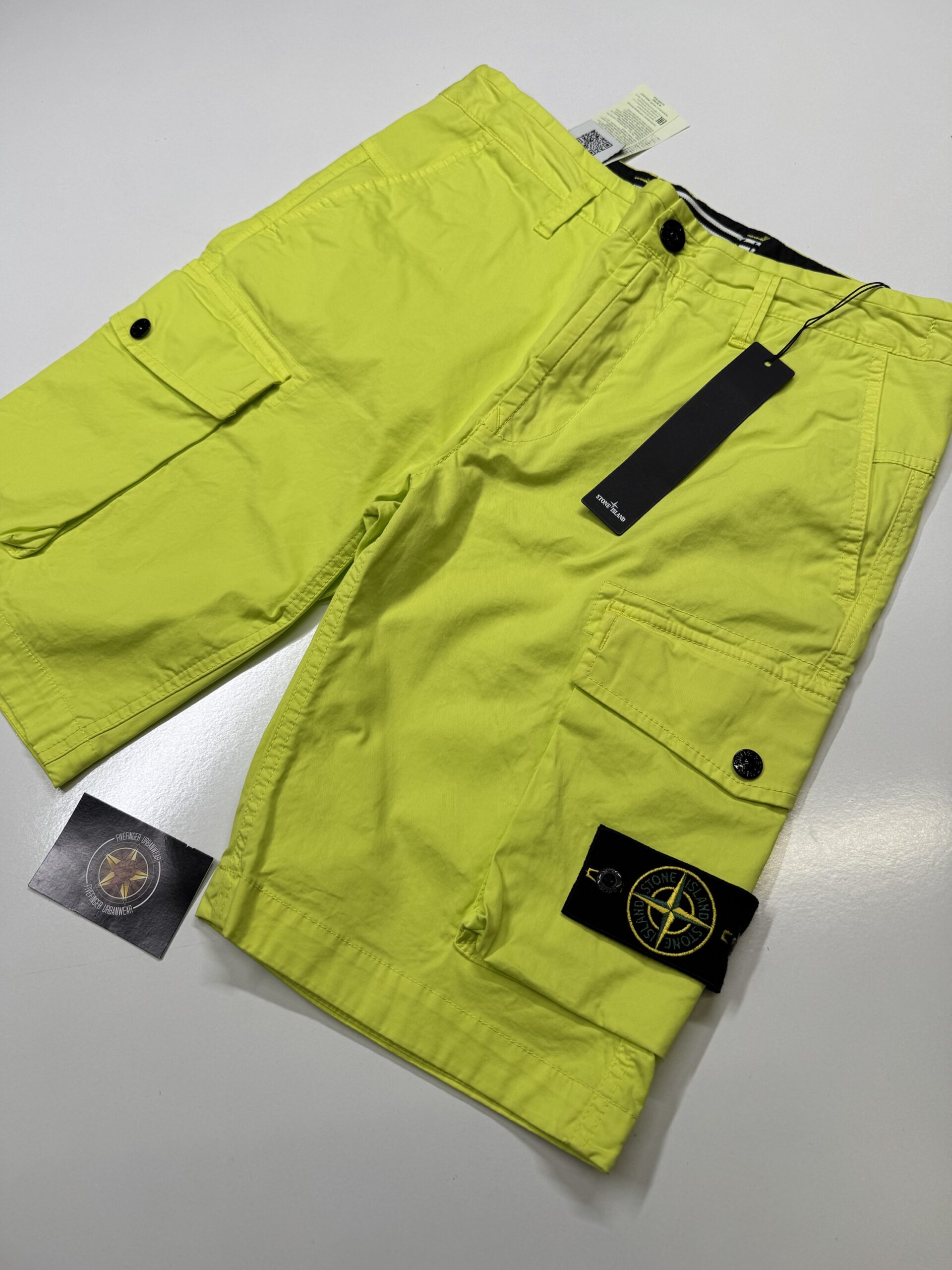 Stone Island L0719 ‘OLD’ TREATMENT Bermuda shorts in brushed cotton canvas – Bright Green W30”
