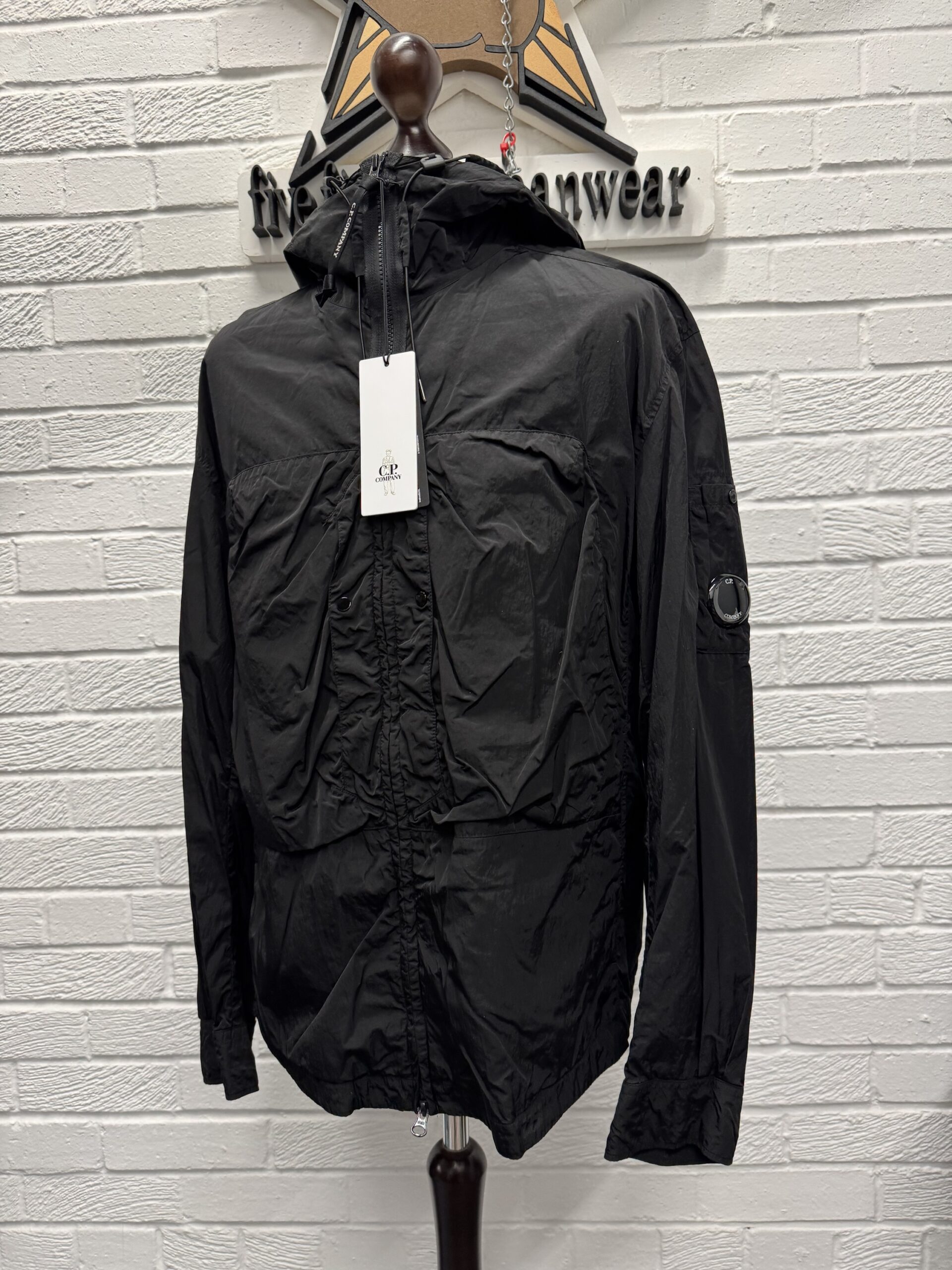 C.P. COMPANY 156A Chrome-R Zipped Hooded Overshirt in Black