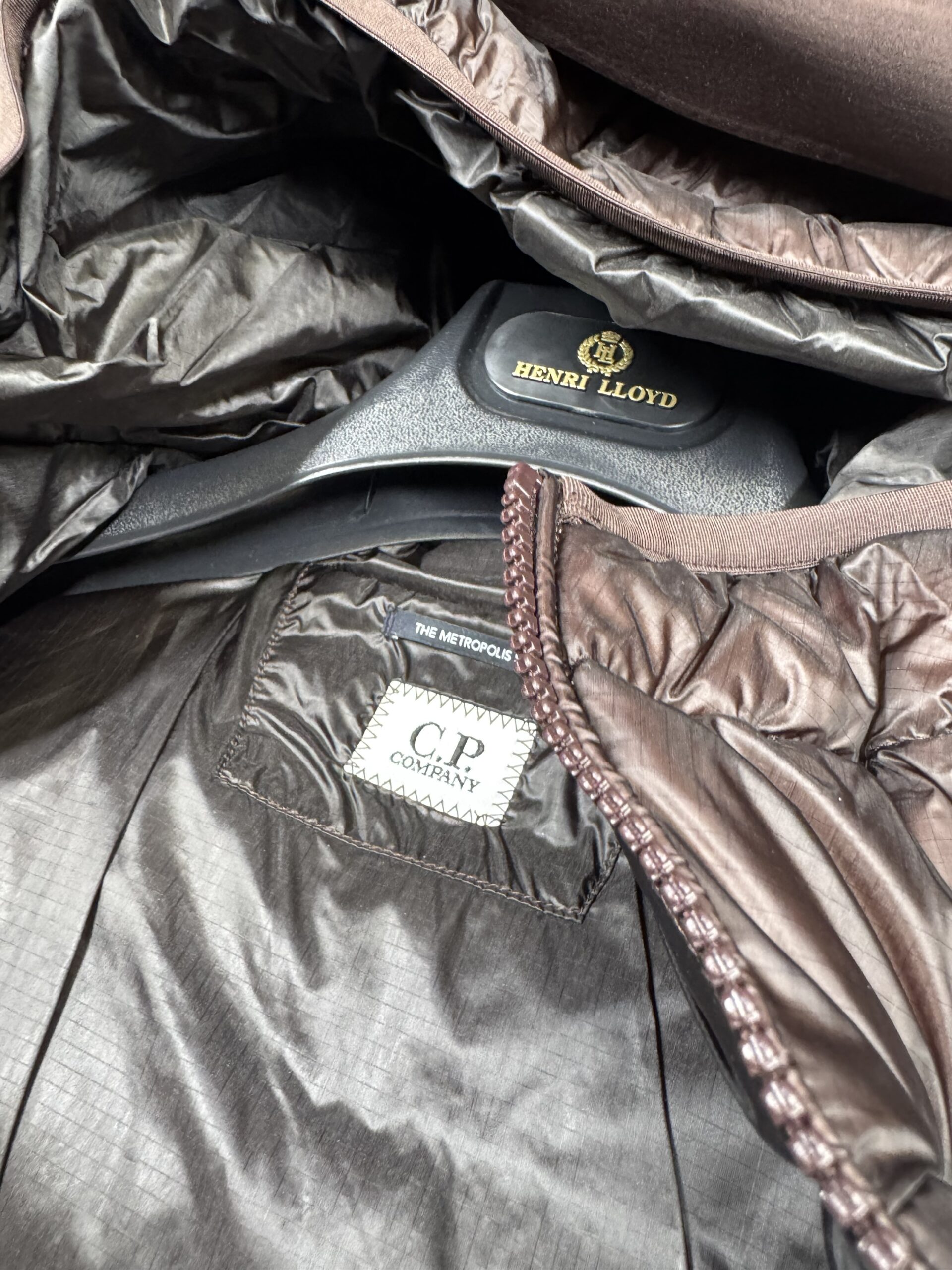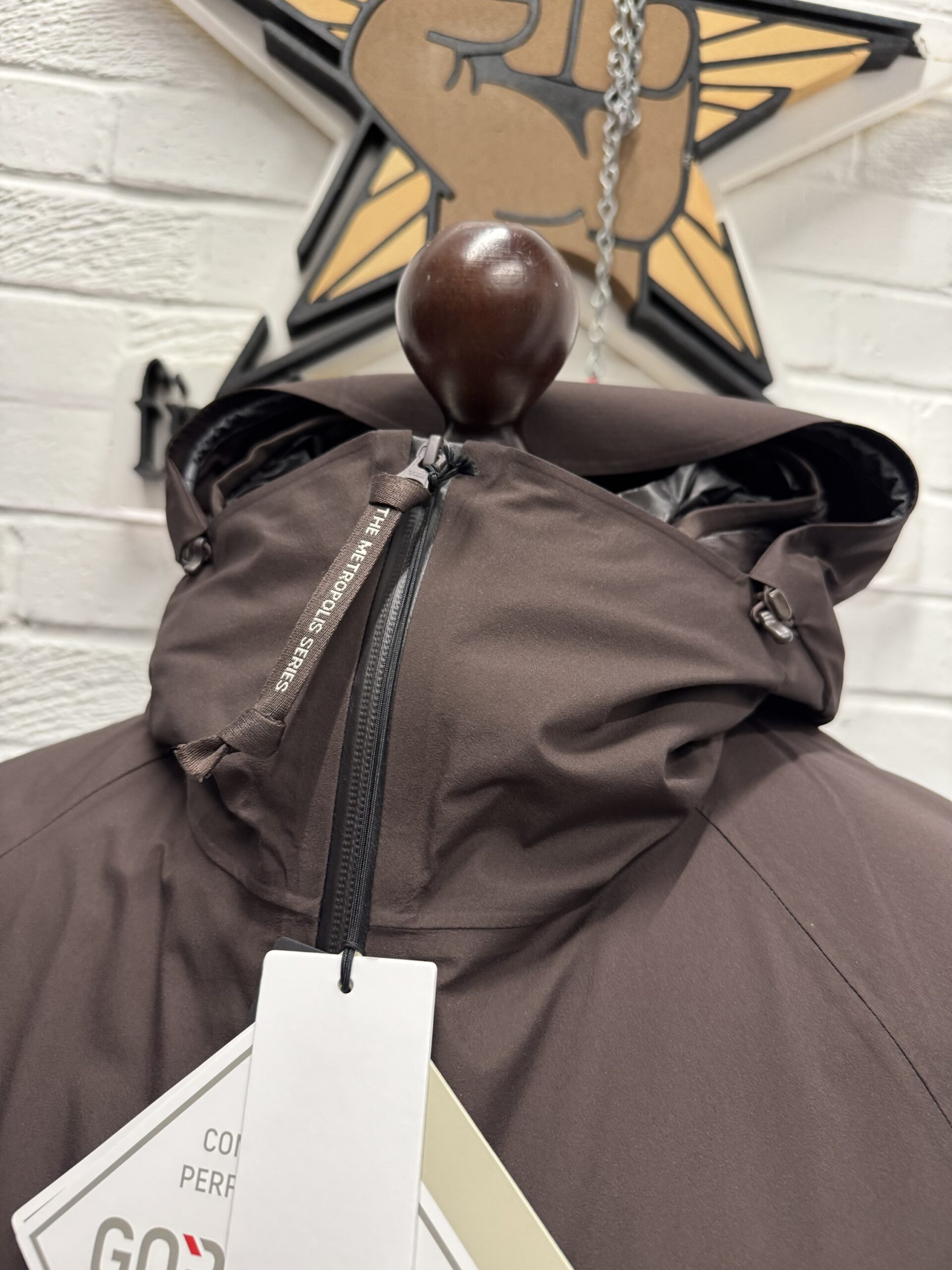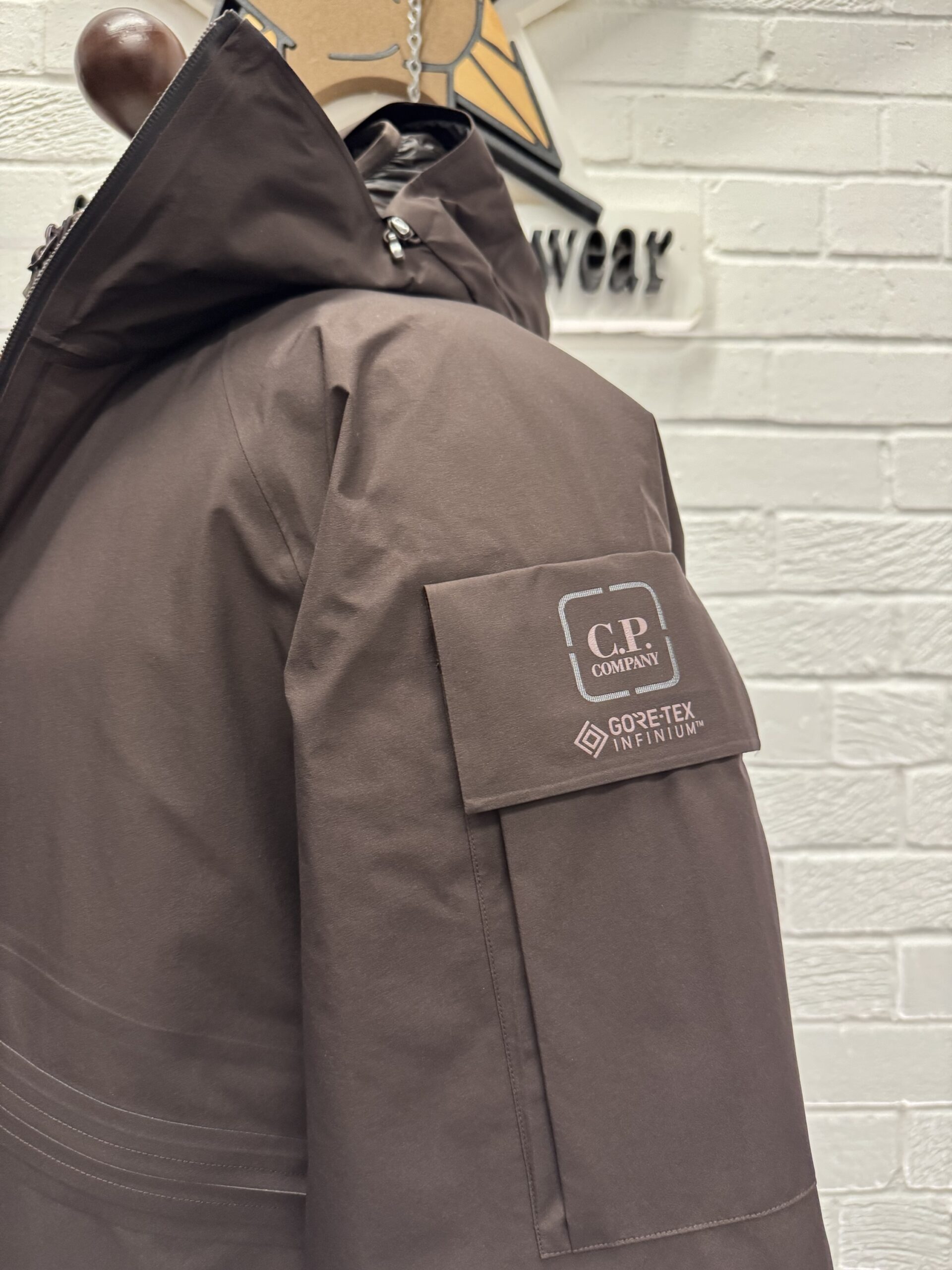 This brown Gore-Tex Metropolis jacket showcases C.P. Company’s technical expertise, as seen in the detachable down-padded lining and hood construction.