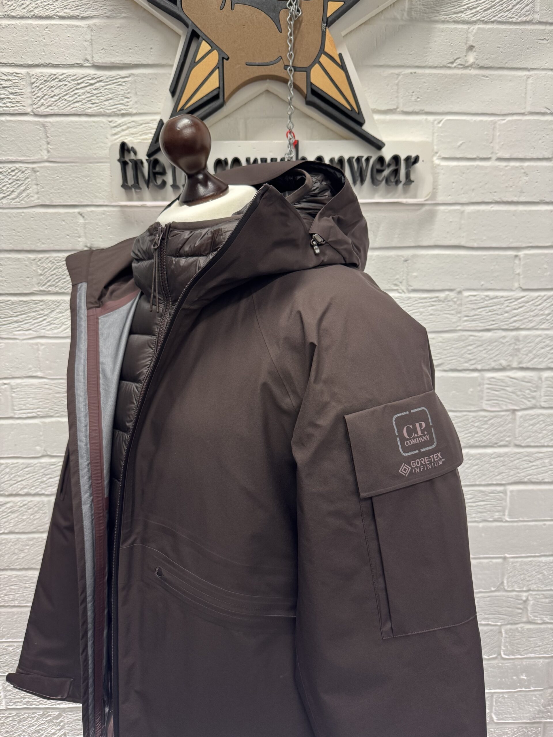 CP Company 019A Goretex Infinium METROPOLIS Hooded 2 in 1 Jacket in rum & raisen