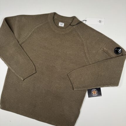 CP Company 040A knitwear crewneck in chenille cotton – Green Large / P2P 22”