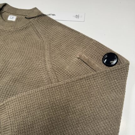 Crewneck sweater with ribbed collar, bottom hem and cuffs, and sleeve compartment with CP Company Lens. It is made with lambswool, which makes the sweater soft, light and at the same time insulating.