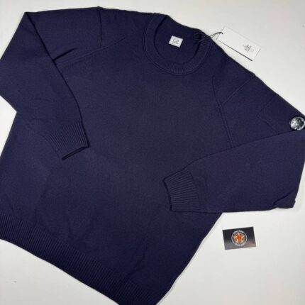 CP COMPANY 047A LAMBSWOOL LENS KNIT SWEATSHIRT IN NAVY – XXXL / P2P 27”