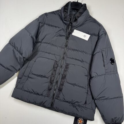 CP COMPANY NYCRA-R DOWN JACKET IN SMOKE GREY